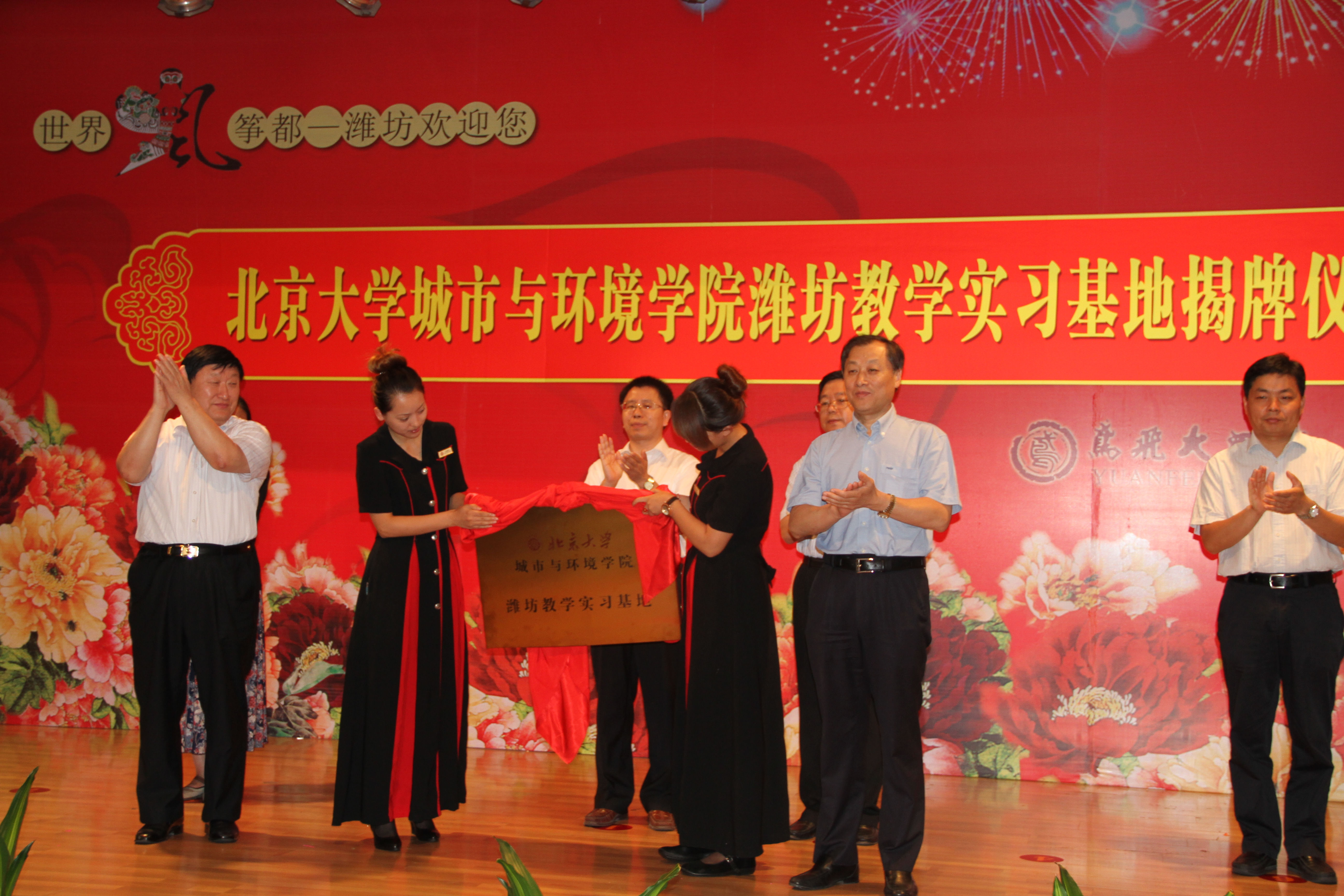 27日上午,肉视频 潍坊教学实习基地揭牌仪式在鸢飞大酒店举行。潍坊市政协顾问刘维国,肉视频 城市与经济地理系主任冯长春为实习基地揭牌。肉视频 党委副书记贺灿飞,潍坊市副市长夏芳晨先后在揭牌仪式上讲话。仪式由潍坊市政府副秘书长于为凯主持。潍坊城市发展研究院院长王文海,潍坊市城市建设重点项目办公室副主任范晓东、王敬贤,肉视频 副教授曹广忠、孟晓晨及潍坊市发改委、规划局、土地局、环保局等单位部分领导出席了揭牌仪式。