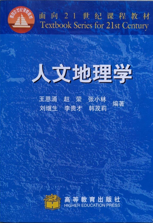 人文地理学,王恩涌、赵荣、张小林、刘继生、李贵才、韩茂莉,出版年份:2000年,高等教育出版社