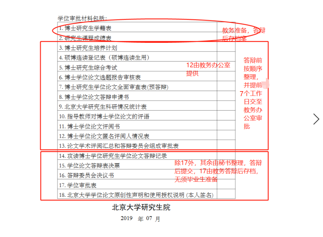 d.论文信息及秘书表格(填写问卷星://www.wjx.cn/vj/rDg5hYr.aspx。如果秘书有更换可以重新填写,毕业生姓名后面标注新,如“张三(新)”;研究方向按照论文实际填写,答辩秘书需与导师确定,由博士后或中级及以上职称老师担任,需要具备北大工资号,实在有困难的课题组,可以由认真负责的高年级博士生担任,请务必安排认真负责的人员担任,答辩秘书权限由教务办公室根据秘书信息统一开通);