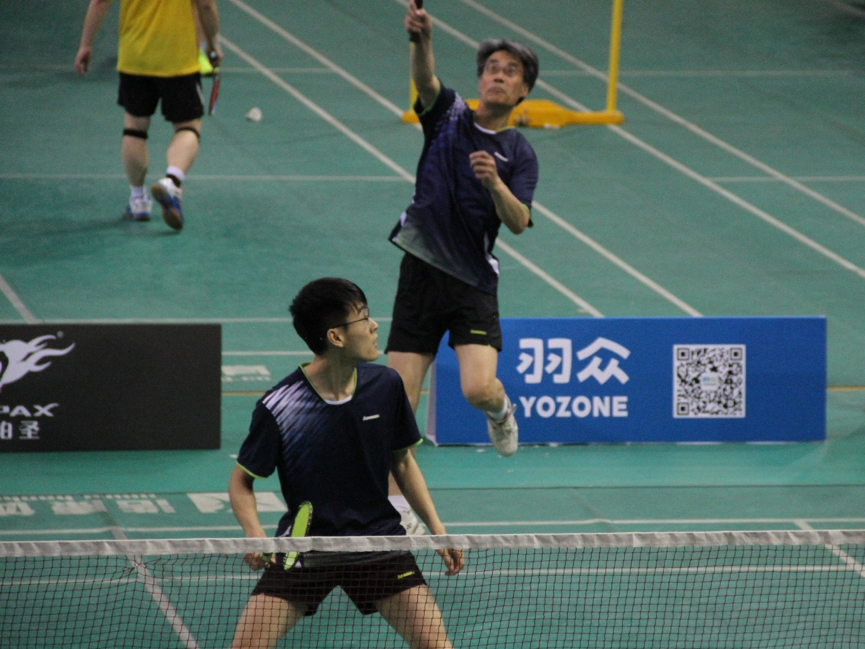 早上八点半,比赛正式拉开帷幕,城环校友队迎来了第一个对手:光华MBA三队,城环校友一开始就展现了强劲的实力,在男双和混双比赛中分别以21:13,21:11战胜对手,虽然在80岁男双(两名运动员年龄相加达到80岁)中遗憾告负,但仍以大比分2:1获胜。后面的比赛中,城环校友队继续稳扎稳打,连续战胜了工学院MEM队和北大86级,以小组第一的身份强势挺进八强。
