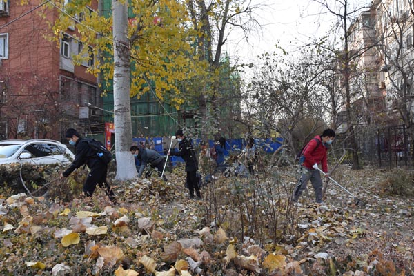 西门准时集合,前往畅春园社区。经过居委会工作人员的耐心指导后,发放手套、口罩、耙子、扫帚,同学们不怕苦不怕累,开始了落叶清扫。面对堆积如山的落叶,同学们分工合作,有人撑起塑料袋,有人拿起工具打落挂在树上的落叶,有人徒手将落叶捡起放到袋子中。虽然扬起灰尘,天气寒冷,但是同学们吃苦耐劳并乐在其中,老师们也参与到清扫落叶的活动中来,经过大家的共同努力,落叶慢慢变得稀少。最终街道整洁如初。 图二.清扫落叶活动进行中 附近的居民见到此情景,纷纷露出欣慰的笑容,称赞我们是热心为人民服务的社会主义好青年。同学们在活动结束后都积极分享自己的心得体会。夜幕降临,畅春园也被清扫得干干净净,同学们在欢声笑语中回到校园,留下难忘的回忆。 图三.同学们分工协作清扫落叶 经过这次清扫活动,大家都深刻感受到维持环境的不易,先辈们为我们创造现在幸福生活的不易,我们只是在冷风中进行了三个小时的落叶清扫活动就已经累得汗流浃背,革命先辈们风里来雨里去,不怕苦不怕累地坚持斗争,在那段峥嵘岁月中奋勇向前、自力更生,才为我们今天的社会主义现代化国家的建立奠定了坚实基础。而我们更应该传承这种大无畏和吃苦耐劳的精神,这是中华民族精神瑰宝,是无产阶级取得胜利的关键与核心,是社会主义建设中新时代青年必不可少的精神食粮,更是我们成为合格的社会主义接班人的首要前提。 图四.同学们用手捡拾落叶 同学们更是感受到了热心服务、一心为民的精神力量。在习近平主席的领导下,我们新一代青年更应该本着为人民服务的精神,将党的精神贯彻落实下去,为构建和谐社会贡献自己的一份力量。人们都说“被需要是一种幸福”。这感觉我们是在真正的做志愿服务之后才获得和理解。把志愿服务当作自己的生活内容和生活方式,时时刻刻去帮助需要帮助的人,做奉献爱心的事,这就是当一名志愿者的真谛。我们应该更加努力的去服务社会,为更多的人送去温暖,让更多的人看到希望。 撰稿:朱晗 供图:彭若男、张孝琰 审核:关汉岳