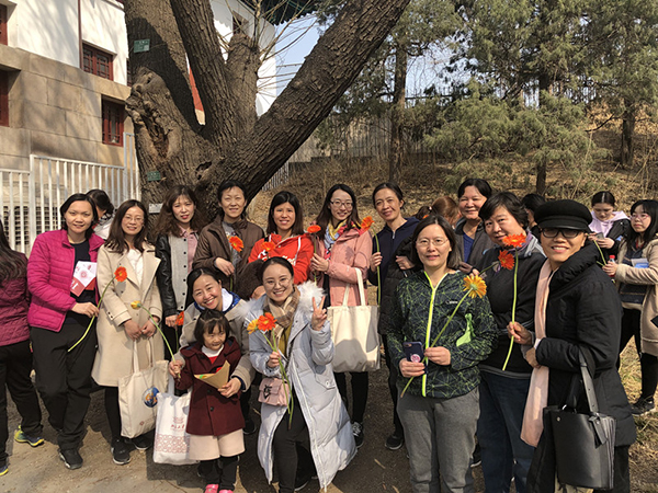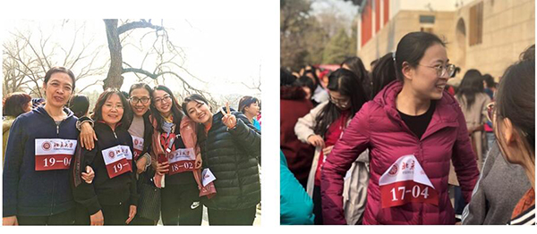 工会为学院女教职工精心准备了以“美丽绽放”为主题的三八节系列活动。 活动一:为“女神们”献上美丽的鲜花和小礼品 图1 节日礼物 3月7日,满载礼品、饱含爱意的工会小分队出现在逸夫贰楼,向每位女教师送去自制的贺卡、美丽的鲜花和暖心小礼品,同时致以节日的温馨祝福。收到礼物的老师个个洋溢着幸福的微笑,全院沉浸在一片欢声笑语,喜悦的节日氛围中。“美丽绽放”三八节系列活动以鲜花拉开序幕。 图2 每位老师都洋溢着幸福的微笑 活动二:组队参加北大女教职工“环湖接力跑”活动 3月8日中午,学院组队参加了由肉视频