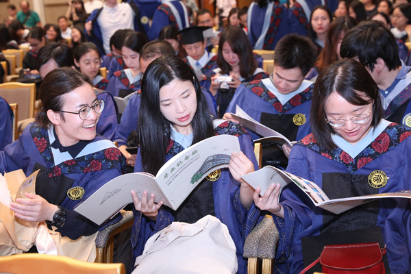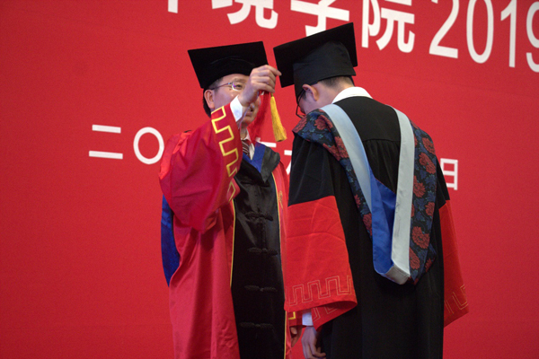 2019届学生毕业典礼在英杰交流中心阳光大厅成功举行。学院院长贺灿飞、副院长李双成、副院长金鑫、党委副书记张新平、院友代表李其林以及学院班主任、任课教师、行政教辅代表出席了典礼活动,参加典礼的还有2019届180名本、硕、博毕业生及部分毕业生家长。典礼由学院副院长金鑫主持。 百周年纪念广场合影 典礼开始前,毕业生们在百周年讲堂前进行了合影,将垂布摆放在胸前,学士帽端正戴好,与老师和同窗分享这一刻属于自己的自豪与喜悦、激动与不舍。 签名墙合影 同学们翻阅毕业纪念册 回到英杰交流中心,毕业生们纷纷在“城风破浪,扬帆远航”的毕业纪念签名墙上签名并合影留念。一笔一划写下的是收获的喜悦,一光一影留住的是离别的不舍。同样带给大家惊喜的还有学院为全体毕业生精心制作的纪念册。翻开册子,一张张笑脸,一幅幅画面,描绘的是圈地为方、绘纸成图的几载青春,诉说的是以诚相待、携手并肩的同窗情谊。 副院长金鑫主持毕业典礼 上午九点,典礼在雄壮的国歌中正式开始。学院2002级环境科学专业校友,北京清新环境技术股份有限公司总裁助理、董事会秘书,雄安清新智慧科技有限公司执行董事、总经理李其林首先致辞。他分享了自己在北大学习的经历和体会,并且讲述了自己从实业、到金融、到再回归环保实业的产业追寻之路,勉励同学们在习近平主席“两山论”逐渐深入人心和国民经济向高质量发展转型的大背景下,用自己的专业素养服务新时代的经济和城市建设的需要,实现自己的人生价值。 院友代表李其林致辞 致辞之后,副院长金鑫代表学院向李其林院友赠送了学院的文化衫和城环地理学60周年纪念册留作纪念。 毕业生家长代表孙勖致辞 2015级本科生孙轶斌父亲孙勖代表毕业生家长致辞,他表达了对老师们的感谢和毕业生们的祝贺,叮嘱同学们牢记城环人的责任与担当,保持面对新鲜事物的接受和好奇,收获经历风雨仍能宠辱不惊的淡定心态。 教师代表王志恒致辞 学院生态学系教师、2015级本科地生班班主任王志恒代表学院教师致辞,他嘱托同学们未来要常怀热情、坚持初心、不忘责任,在未来的人生道路上忘却过往的光环,攀向更高的山峰。最后,王老师祝愿同学们在今后的人生道路上事业有成、生活幸福。 本科毕业生代表申子靖发言 研究生毕业生代表刘飞发言 紧接着,2014级本科毕业生申子靖发言,他表达了对学院老师、父母家人和同学们的感谢,并以“足迹、成长、感恩”为线将本科时光娓娓道来。2016级硕士研究生刘飞回顾了自己在北大、在城环的三年时光。即将走上选调岗位的他,也结合自己的职业规划,分享了“心负黄河月,饱含家国情”将个人发展与国家发展融为一体的使命感和责任感。 院长贺灿飞致辞 院长贺灿飞教授做题为“以理性重新认识世界”的毕业致辞。他以成熟的种子为喻,祝愿毕业生们带着北大的独特基因在五湖四海扎根生长。他希望大家基于地理学独特的思维和视角,在时代飞速变化的今天,能够实现人生的内在发展,与时代同行,真正践行“城载世界,环抱未来”的豪迈宣言。他嘱托大家面对纷繁复杂的发展环境,用理性保持清醒的判断;面对尚且存在的问题,用理解保持坚定的信心;面对日新月异的发展需求,用理论做为坚实的基础;面对社会舆论的质疑,用理想作为动力的源泉;面对前途的未知性,用理念拥抱灿烂的未来。 毕业生特别节目 “故事已经到终点,结局不再有悬念,可是人海茫茫,难言相见”毕业生特别节目《转身之间》用词曲的缠绵道出了毕业季的无限不舍,轻柔温润的歌声唤起了在场每一位同学、老师和家长独特的城环记忆。 党委副书记张新平宣读获奖名单 每一年,学院都有着一群“德才均备、体魄健全”的优秀毕业生,无论在学术科研还是社会活动,他们都能够从容面对并取得优异的成绩。党委副书记张新平老师宣读了2019年优秀毕业生和优秀博士毕业论文的获奖名单,出席嘉宾老师一起上台为获得“北京市优秀毕业生”的同学们颁奖,以展示城环学子风采,激励未毕业同学努力奋进。 嘉宾老师为北京市优秀毕业生颁奖 副院长李双成宣读学位授予决定 随后,副院长李双成老师宣读了学位授予决定,并与贺灿飞老师一起为毕业生拨穗、合影留念。 院长贺灿飞、副院长李双成为毕业生拨穗并合影留念 毕业典礼在师生齐唱《燕园情》的歌声中圆满结束。“燕园情,千千结”,全体毕业生将传承“爱国、进步、民主、科学”的精神,带着北大城环人脚踏实地、不畏攀登的精神气质,带着学院的殷切期盼,开启新的征程! 毕业典礼现场