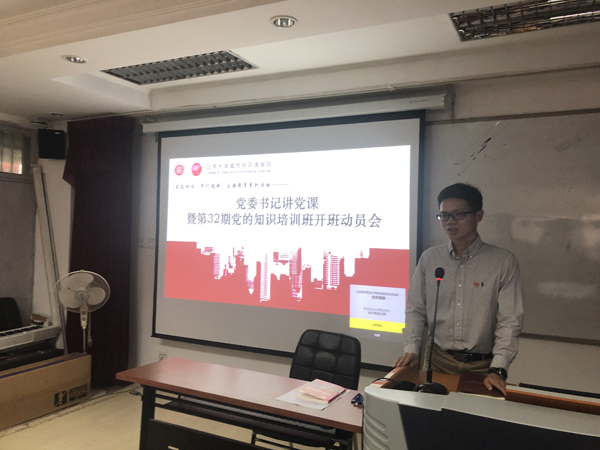 第32期党的知识培训班开班动员会暨“不忘初心、牢记使命”党委书记讲党课活动在逸夫二楼3459教室举行。学院党委书记刘耕年、党委副书记张新平出席,110名入党积极分子参与。会议由学院团委书记、学生工作办公室主任王宇凡主持。 张新平首先做开班动员。他对新学期主动参与“不忘初心、牢记使命”系列活动,积极向组织靠拢的培训班学员们表示了肯定。学院党委结合“不忘初心、牢记使命”主题教育为学员们设计了系统化的培训课程,希望同学们能够认真学习,从中深刻理解党的理论知识和国家的发展变化,从思想上树立加入中国共产党的光荣感和责任感,端正入党动机。 党课上,刘耕年从为什么选择加入中国共产党、如何从思想上和行动上积极向党组织靠拢以及入党流程三个方面进行了详细解读。刘耕年指出,现阶段国家正处于全面迈向现代化的关键时期,身为新时代北大学子,应该看到党的先进性,积极向党组织靠拢,应该勇于担当、努力学习、发挥自己的才能,为国家发展做出新一代青年贡献。刘耕年鼓励同学们向身边的党员榜样学习,向老一辈优秀党员学习,牢记北大人、城环人的初心,培养自己的使命意识与担当精神,在更高、更广、更有利的位置上发挥引领作用。刘耕年还强调,城环学生应结合学科特点,把自己的学习与国家“五位一体”的总体布局联系起来,深入学习领会习近平新时代中国特色社会主义生态文明思想,积极投身美丽中国建设、乡村振兴等国家重要战略中。 党课结束后,本期培训班领队、2019级博士党支部书记池骋就培训计划、活动安排、考勤规定和评议标准等内容向学员们作了说明。本科生党支部书记曹志强也就本科党支部新一年的情况与积极分子入党的具体流程进行了补充说明。 本次党委书记讲党课活动是肉视频