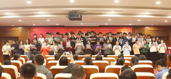 在活动中的积极参与表示了高度的赞扬。 “我与国庆重大活动”故事分享 之后,几位不同身份的学生代表分别分享了自己与国庆重大活动的故事。作为志愿者代表,韩云凤、孙福月与师生分享了活动当日自己的经历与内心感受:庆典志愿者三点半出发,夜穿故宫,引导服务,虽身体劳累但精神充实;成就展志愿者虽未达庆典现场,但也在岗位上兢兢业业,为祖国庆生。替补成员万山铨虽最终没能走上长安街,但仍无怨无悔,为自己的使命感到骄傲。秦艳伟代表参加群众游行的同学们讲述了训练时的辛苦与欢乐,走过天安门前的激动与自豪。王浩舒分享了广场合唱成员用三个月里高强度、高密度的训练和合排,锤炼出同一种声音,为祖国歌唱、为时代的美好未来歌唱的经历。作为小队长,范晓琳回忆起自己与队员们相处的点点滴滴,在彼此的交流之中对北大和祖国的感情也愈发深厚。 贺灿飞宣读学院嘉奖令 陈耀华为群众游行方阵师生颁奖 李晓瑭为志愿者颁奖 接下来,贺灿飞宣读了学院对重大活动参与师生的嘉奖令,刘耕年、贺灿飞、石长翼、陈耀华、张新平、李晓瑭为师生颁奖。之后,2019级本科新生合唱一首《国家》,全体与会成员齐唱《同心共筑中国梦》,以歌声表达对祖国深沉的爱,向祖国献礼。现场仿佛回到了重大活动当日,同学们激动地挥舞起手中的红旗,“团结起来,振兴中华”的口号响彻会场。 2019级本科新生合唱《国家》 本次大会表彰了在重大活动中团结一心、砥砺奋进,继承和发扬“爱国、进步、民主、科学”光荣传统的学院师生,展现了城环人昂扬向上的精神、一往无前的决心和深厚的家国情怀。这次活动同时也是学院“不忘初心、牢记使命”主题教育的重要组成部分,是学院落实理论学习制度的创新形式。学院在将进一步深入学习贯彻习近平新时代中国特色社会主义思想,不忘初心,牢记使命,高举红色旗帜,弘扬革命精神,高扬奋斗风帆,激发创新活力,凝心铸魂再出发,为祖国培育赤诚爱国、奋斗不息的新时代青年人才。