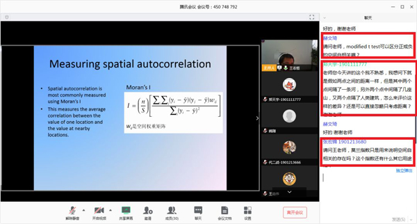 2020年春季学期开学。全体城环人在学校与学院的部署下顺利实现延期返校,按时上学的教学目标。我们将通过这篇新闻记录这段特殊的历史时期。 一、课堂速览 开课之前,先来段自我介绍 城市规划与公共健康 授课教师马亮 助教王宏宇 上课开始!有这种微信群线上交流的基本款 经济地理学进展 授课教师贺灿飞 助教汤慧桢 还有大家一起看录像的升级版 生态学研究进展 授课教师刘鸿雁 助教赫文琦 还有认真化妆以后却忍痛关掉摄像头专心只看老师的 发展战略与区域开发 授课教师李双成 助教张雅娟 生态统计方法 授课教师王少鹏 助教罗明宇 或者与老师相看两不厌的 土地科学原理 授课教师蒙吉军 助教程浩然 以及老师觉得你懂了但你没懂只能疯狂给大佬刷“问题”打call的 生态学技术与方法 授课教师王志恒 助教李亦超 最后是学生发言环节(一定要保持微笑) 城市社会专题 授课教师柴彦威 助教李彦熙 二、教师采访 网络实时课程对学生来说也许只是换了一个看直播的平台,对老师来说却是从教以来一次巨大的挑战。课后我们及时采访了几位老师,来看看他们的感想吧! 生态学研究进展 刘鸿雁 : 全新形式的课堂、特殊时期的授课,对于我而言是一次很难得的经历,学校和学院给予了很多帮助,包括线上网络培训、微信群的反馈等。为了网课(植物学),我提前工作了一个多星期,事先实验了三个系统,担心黑屏又预录了语音课程,准确地预测了教学网拥堵,最后果断地采用了腾讯会议系统,总之是一次新奇而精彩的经历,仿佛迎接一场大考。我感到因为疫情和学生们的空间距离更远了;因为网课,我和这些“网络原住民”的心灵距离,却更近了。 疫情不能阻止学习的脚步和科研的热情,希望每一位同学利用好在家学习的契机,合理利用时间。同时建议大家网络上课期间打开摄像头,便于教师看到学生的表情,对学生的状态做出判断,实时调整教学进度。最后让我们共同期待疫情的胜利和返校的相聚! 土地科学原理 蒙吉军: 说实话,对于上网络课程,我之前是排斥的,因为总觉得自己不善于出镜,在镜头前会紧张,担心讲课会发挥不好。但接到学校延期的通知后,我就决定这学期开设的课程均采用在线方式教学,不影响教学进度和效果。 因为是第一次上网课,脑海里设想了很多上课的情景,甚至像表演似的设计好了一些重要环节合适的台词。另外,还对自己身后背景进行了专门的布局,摆放了一盆高大的绿植,并选择了光线最佳的视频拍摄角度和自己座位的最适高度,最后上课的时候还穿了正装。总的来说,我感觉第一次网课还是非常成功的,也感谢所有选课同学的配合和助教的辛勤付出。 最后希望同学们不要恐慌,遵守国家、社区防疫的要求,尽量少出门,出门一定戴口罩,做到不聚会、勤洗手。防疫的同时,也要不耽误学习和科研,希望同学们在家合理安排时间,争取使灾害造成的影响最小化。 全球变化生态学 朱彪 我使用腾讯会议上课,除了看不到学生之外,效果还不错,最后留些时间与学生互动,没有什么困难。网课对课堂效果肯定有影响,与学生的眼神交流比较困难,也没有学生的第一时间反馈和互动;在课程最后留出时间与学生语音互动,提问回答,有部分弥补作用。希望大家不要放松学业,在家注意锻炼和饮食,做好防护,有问题多与任课教师或自己导师沟通,把疫情的影响降到最低。 三、后勤保障 开学第一周顺利完成教学任务不仅源于老师的精心准备,也离不开学院的后勤保障。为此我们采访了学院教务老师于佳鑫,详细了解开学第一周背后的故事: 研究生教务这边的工作主要分成三个部分,招生、培养和学位 。从疫情爆发以来,根据学校和学院的工作安排,全体老师就开始在线上开展工作。关于课程方面,我的主要工作就是全力保证课程的顺利进行。具体来说,2月6日学校给全体教务人员开会布置工作,我在2月7日将学校的精神传达给学院的老师们,本学期预计开设46门研究生课程,我都逐一去跟老师沟通,了解他们想用什么样的方式去授课。一开始,部分老师因为担心授课效果受影响,对网络授课的形式还不是很接受。根据学校和学院的安排,本学期网络授课期间,每门课程均配备1名助教,协助老师们准备课程。在研究生院、教发中心、学院老师们和助教们的共同努力下,最终各位老师根据课程特点选择了最合适的授课方式。 所有课程的授课方式确定后,2月14日我给全体研究生同学发邮件通知。因为大家都是第一次遇到特殊情况,难免会有各种疑问,那几天我就一直守在电脑前面回复邮件。开课后我这边也是随时在关注课程效果,收集每天课程的教学情况反馈。 这个过程中有很多比较有趣或感人的事,其中有一件我印象特别深,就是网络并没有影响大家上课的积极性,反而好像更积极了。有两门课程的老师跟我提出希望再增加选课人数上限,因为课程容量是根据去年数据定的,今年选课人数多了不少,有部分学生没选上课然后问能不能增加。我觉得宅在家,让同学们学习的积极性就更高了。也希望没课的同学们好好准备综合考试、开题和毕业论文,减少疫情对大家学业的影响。 我们还采访了部分助教,来看看他们的付出吧: 土地科学原理助教 程浩然: 第一次担任助教,就遇上了“云教学”这种特殊的形式,新奇之余更多的是紧张。在接受了全面的在线教学培训,并情景
