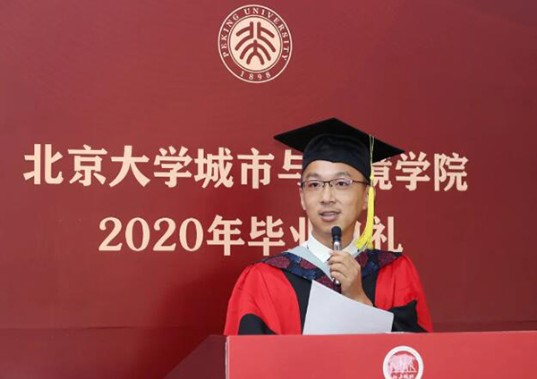 毕业,开启一段新的人生旅程。我能体会你们的心情,因为15年前,我就在这里参加了城环学院的毕业典礼,当时是硕士毕业。我就结合毕业后这些年的自身经历,给大家提两点建议。 第一个,希望大家能找到一个长期稳定的个人爱好,最好是和体育有关,坚持下去,可以强身健体,可以发泄压力。我个人很喜欢踢球,在美国读书时的无聊时光,大都是在球场上度过的。刚回国工作时,压力较大,锻炼不多,工作效率也不高。最近几年,我又开始有规律地踢球,整个身体状态好很多,工作的效率提高很多,很好地缓解了工作和生活的压力。我也非常喜欢城环教工运动队组织的体育活动,以及每年的北大运动会。“完全人格,首在体育”,希望大家都能找到一个业余爱好,可以是跑步、球类、游泳、爬山等。有了好身体,才有好心情,才有高质量的生活和高效率的工作。 第二个,希望大家尽快找到一个值得自己去长期付出的事业。如果你已经找到,恭喜你,希望你坚持下去。如果你还没有找到,希望不要等太久。兴趣是最好的老师,如果自己的职业就是自己的兴趣,那岂不是很开心的事情?如果你不确定,那就遵从自己的内心(follow your heart)。虽然我比你们大不了多少,博士毕业也才10年,但还是能体会到人生是一场长跑,暂时的领先和落后都不算什么。只要你选准方向,长期坚持,一定会做出成果,达到目标。一辈子能做好一件事,就是很成功的人生。 我们处在一个“百年未有之大变局”的时代。同为北大人,我还想叮嘱你们一句,希望你们追求卓越,精益求精,担当起自己的责任,无愧于北大人的身份。毕业后不管是走上工作岗位,还是继续在校园求学,我希望你们都能stay hungry, stay foolish (求知若饥,虚心若愚),努力去追求和享受幸福美好的生活。 祝你们前程似锦,不负韶华!