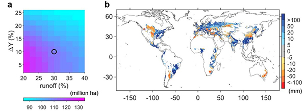 农业灌溉约占全球总取水量的三分之二,被认为是提高作物产量和提升农业适应气候变化能力的重要手段。灌溉的增产效应随作物品种、气候以及土壤特征等因素发生变化,具有明显地理格局。然而,迄今为止,全球和区域尺度的灌溉增产效应仍不明确,是准确理解水-粮食-社会经济系统相互作用的瓶颈之一。 王旭辉研究员与合作者综合使用调查和统计数据以及10个全球作物模型,研制了全球小麦和玉米灌溉增产效应分布图,并解析了这两种作物的灌溉水供给与需求。研究发现,充分灌溉对全球小麦和玉米单产的平均贡献分别为34±9%和22±13%。但是,当前30–47%的雨养农田的无法获得充足和可持续的水资源供给。这既制约了灌溉增产潜力,也导致灌溉无法可持续地抵消气候变暖对作物产量的负面影响。研究还发现,全球不同流域,灌溉需求占径流的比例差异巨大:最低小于 1%,最高大于300%。这意味着,跨流域调水是纾解流域尺度灌溉水需求与供给失衡的有效策略。这项研究为准确理解农业管理活动对人-地系统的影响提供了新证据,也为水和粮食安全的决策提供了科学支撑。 图1 全球小麦和玉米灌溉水需求和供给平衡的空间格局 该研究成果以“Global irrigation contribution to wheat and maize yield”为题发表于《自然—通讯》(Nature Communications)杂志。肉视频