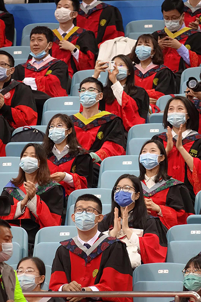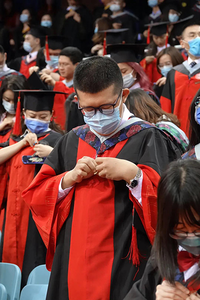 建院10周年纪念文集》等纪念礼品,为校友们送上暖暖的祝福。 垂布摆在胸前,学士帽端正戴好, 穿戴好学位服的校友们移步图书馆正门,与学院老师共同补拍毕业集体合影,将青春定格成最美的回忆。从初入燕园到毕业离别,燕园承载着太多师生的共同回忆,一年后再相聚,师生尽情交流,或忆当年学习时光,或叙浓厚师生情谊,气氛十分热烈。 走进学位授予仪式场馆,场内婉转的青春歌曲,屏幕播放的毕业照片,学生代表的精彩分享,引起校友们的深深共鸣,唤起大家美好的青春记忆。一枚镌刻有校庆日期的专属校徽,一场迟到但未缺席的定制典礼,让校友们倍感温暖。领导与老师们的谆谆教导和殷殷期望,让校友们备受鼓舞,获得扬帆起航、为国奋斗的决心和勇气。离别情、师生意、爱国心在《燕园情》的歌声中交融,久久不能散去。 15级本科城规班在逸夫二楼教室共进午餐。享用美食之余,校友们畅谈在学院学习和毕业后生活的点滴。道不尽的情谊,话不完的回忆,让这里充满了重聚的感动与欢乐。 午休完毕,学院还特意为毕业生们准备了城环专属活动,邀请校友们登顶院楼俯瞰一次北大,并作为第一批访客参观学院新大楼。 校友们登上天台,欣然远眺,一览校园景色。风起云散,故景如旧,博雅塔沐浴阳光,燕园的一草一木依旧如此葱郁静美。校友们纷纷拿起相机,将燕园美景化为永恒的眷恋。 俯瞰燕园美景后,校友们又一同前往参观了学院新大楼。新大楼的建设得到了88级刘水学长等大量校友的慷慨捐赠和大力支持,学院也热情地邀请校友们作为新大楼的第一批客人。校友们按捺不住光临“新家”的兴奋与喜悦,或举起相机记录崭新院楼的美丽光影,或谈论起在逸夫二楼学习生活的点滴回忆,言语中满含着对学院深厚的情感和对学院未来的美好期待。 夕阳西下,2020届城环校友的返校系列活动在激动与不舍中落下帷幕。凡是过往,皆为序章,校友们的燕园生活虽已结束,但这正是他们奔向海角天涯,投身国家富强、民族振兴、人民幸福事业的开始。燕园共度的美好时光,城环师生的难忘情谊,都会化为城环人前行的动力,成为城环人精彩人生中的璀璨星光! 此次城环专属返校系列活动是新冠疫情以来,学院首次为校友们举办的大型线下活动。连月来,学院相关师生精心策划,广泛联络,周到服务,为校友“回家”做足了充分准备。学院是广大城环校友的温暖港湾和坚实后盾,是大家永远的精神家园。欢迎广大校友常回家看看,关注和支持学院发展建设,让我们继续相约城环,携手前行!
