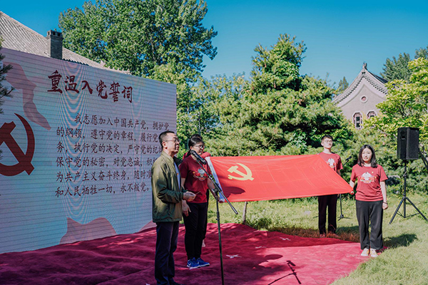 静园草坪举行。 在启动仪式上,刘耕年指出,今年是中国共产党成立一百周年,也是全面建设社会主义现代化国家启程之年,北大学子、城环青年将比以往肩负更为重大的历史使命。本次活动不仅将帮助大家认真学习北大人的奋斗精神、燕园承载的红色记忆以及党所经历的苦难辉煌,更将成为学院引领城环青年立志传承北大和城环精神、不断发扬红色传统、持续开展党史学习教育的精彩一课。 刘耕年致辞 “大地,我的生命,从此广阔如你”,学院合唱团为大家演唱城环原创歌曲《大地》。该曲讲述了一代代城环人心怀家国、不断求索,服务党和人民的事业需要,接续传承专业精神的故事。当音乐声响起,MV中不断重现学院师生野外实习、高原科考、城乡建设等活动的历史场景,初心矢志不渝,使命代代接力,现场师生深深为之感染鼓舞。 《大地》演唱 全体师生认真观看《大地》 “红色地理微课堂”系列视频进行了首场发布。该系列视频以学院为迎接建党百年编写的《百年伟业·红色经纬》地理学教材为基础特别打造,邀请学院知名教师详细解读教材中党史大事涉及的地理学知识。全体师生一同观看了刘耕年主讲的系列视频第一课——《首战平型关、威名天下扬》,视频从专业视角讲解平型关的地形地貌,剖析我军取胜之匙,阐明平型关大捷的关键作用,深入浅出地讲解增添了思政教育的地理味,增强了学史活动的专业性。视频发布后,在刘耕年的带领下,大家一起重温入党誓词,再悟入党初心。 重温入党誓词 在“燕园寻红”授旗环节中,刘耕年、王逸鸣、张新平、何瑾、王春和万岱向参加活动的队伍授旗,6支队伍结合专业背景分别被命名为“美丽中国”“生态文明”“绿水青山”“绿色低碳”“智慧城市”“乡村振兴”,将“城载世界,怀抱未来”的专业情怀融入到活动当中。 授旗仪式 在部队退役归来的2016级本科生李龙盛示范下,参加活动的嘉宾老师带领同学们进行热身活动,“燕园寻红”定向越野活动正式拉开帷幕。 运动热身 燕园寻红,探北大精神之源 燕园寻红,寻的是代代赓续的百年血脉,矢志不渝的红色初心。依托燕园历史,用好红色资源,传承好红色基因,是我们学习党史、爱党爱校的重要一环。本次活动共有8个打卡点,引导同学们在燕园中追寻红色光影,感悟百年征途。 燕园处处红,红色记忆深藏此间。在活动中,队员们依次经过静园“三一八”遇难烈士纪念碑、李大钊蔡元培塑像、西南联大纪念碑、华表、日晷、百周年纪念讲堂广场等场所,一路追寻燕园红色遗产和精神地标,体悟其中承载的光荣历史,在问答与游戏中深入思考北大命运是如何与党的事业血脉相连。 队员们在断桥残雪牌坊下团结协作,在振兴中华碑前放声歌唱,在百周年讲堂广场上巧解难题。建党百年史中,肉视频