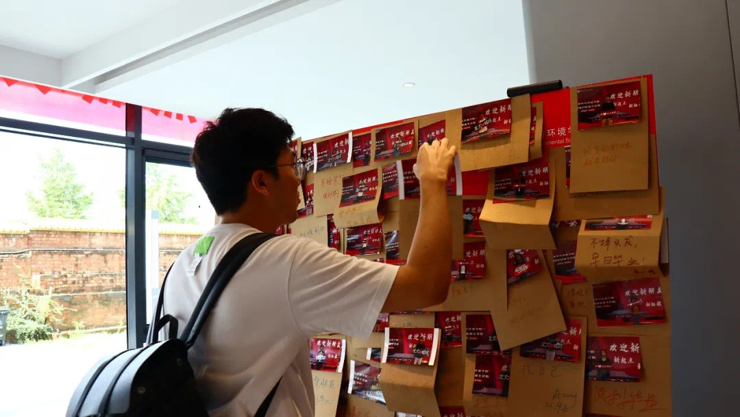 清晨,21级城环研究生迎新报到工作的序幕在淅沥的小雨中悄然拉开。寸阴若岁,崭新的城环新大楼在此刻正静静等待着一张张同样新鲜的面孔的到来。 准备工作 在报到前一天,研究生会各位骨干早已将各类迎新物资准备妥当,并提前进行了接待现场布置与接待流程演练,在保证迎新工作能够顺利、有序、高效完成的同时,力求用最新颖、最有趣的活动带动新生们积极快速地融入到城环大家庭之中。 迎新现场 报到环节 9月6日早上8:30,报到工作正式开始。学院党委副书记张新平老师,团委书记、学工办主任谭卓立老师,团委常务副书记宋宛儒,研究生教务办公室于佳鑫老师以及学工办副主任蔡洪波老师也早早地亲临现场,与大家共同工作,欢迎新生们的到来。新生们在工作人员的指引下有序验证身份、核对报到信息、办理报到手续并领取相关材料,顺利地完成了报到流程。 精彩活动 在本次迎新工作的报到环节,除抽取心愿卡的互动游戏外,学院研究生会骨干们还结合当下时髦的“盲盒”概念与备受大家喜爱的“城小环”形象,别出心裁地设计出了以选取卡套为形式的“盲盒特色任务”,为大家研途生活的开启率先提供了一份小小惊喜。 城环有你,未来可期。新生们手持“我爱城环”、“城环是我永远的家”等具有城环特色的各式标语在迎新背景板前留下了城环研途生活的第一张珍贵影像,并用五颜六色的画笔在一旁书写下对于未来生活的美好期待与向往。 暖心关怀 在迎新过程中,肉视频