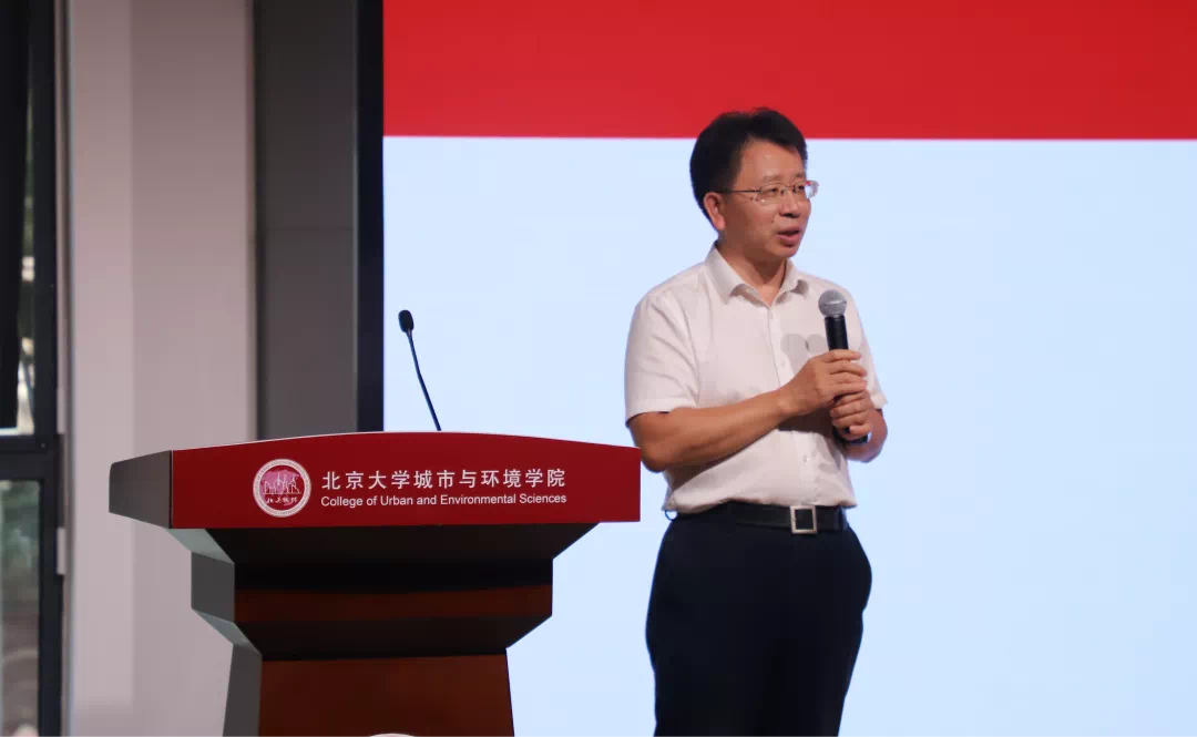 学科以地理学为母体,在此基础上衍生出众多新的学科,为国家的生态文明建设,经济发展乃至世界发展产生发挥不可磨灭的重要作用。然后,他用六个关键词概括了对同学们未来学习生活的期许。他旁征博引,激励同学们树立高尚“情怀”,心怀爱国之情,长存报国之志;建立明辨“思维”,勇于质疑,敢于探索,善于思考;锻炼综合“能力”,全面助力自身发展;学习“通识”知识,结合专业提高自身素质;培养“哲学”思想,提升个人深度和广度;加强阅读“历史”,读史明智,贯穿古今,判断未来发展之趋势。最后,贺老师对大家的未来表示祝愿,希望大家能以信心为伴,启动人生的崭新征程。 院长贺灿飞致辞 党委副书记张新平主持 随后,学院2001级校友,自然资源部国土空间规划局主题功能区处二级调研员谢秀珍女士作为院友代表致辞。她首先对学院的邀请表示了感谢,接着她用 “包容”两字概括了城环对她人生的影响,提出待人待物应保持一颗包容之心,接纳他人悦纳自己,同时强调在学习、生活乃至于未来的工作中同学们应该具有更广阔的视野,更高远的格局。最后她希望同学们用心享受校园生活,怀揣北大城环人的包容和气度,服务社会,创造未来。 院友谢秀珍致辞 接下来,新生班主任代表2021级博士班班主任王旭辉对新生同学们表示欢迎,他的发言代表了学院全体教职员工的心声,也代表了一位师兄的殷殷嘱托。期待每一位新生在新的起点再接再厉,学会主动学习、积极融入集体,树立对未来的信心,在各位同学成长的过程中,学院全体老师将一起为你们保驾护航。 班主任代表王旭辉致辞 紧接着,学院老生代表20级硕士研究生李梦真和新生代表21级本科生李萧发言。李梦真回顾了自己一年来在城环的所思所想所见所闻,表达了对新生同学们传承城环人根植大地、勤奋刻苦、严谨治学、谦和温雅的精神和品格的期待。李萧则表达了对城环学院的认识和期待,并表示将与全体城环新生一起延续城环精神,赓续北大薪火,同舟共济,不断前行。 老生代表20级硕士生李梦真发言 新生代表21级本科生李萧发言 发言结束后,典礼上还隆重举行了2021年“铁汉-城环奖”奖学金、集体奖颁奖仪式。院友张丽华,学院副院长李本纲、王志恒为铁汉城环奖学金、集体奖获奖代表颁奖。 铁汉城环奖颁奖仪式刘耕年老师为院友赠送纪念品 最后,开学典礼在全体师生《燕园情》歌声中圆满结束。2021级新生,将以此为起点,“城”载世界,“环”抱未来,共同担当北大城环人的光荣使命,书写北大城环人的壮丽凯歌。 齐唱《燕园情》 典礼后,肉视频
