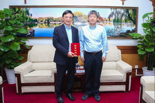副院长金鑫主持仪式。 首先,方精云院士代表评议组致辞。他对各位嘉宾的到来表示诚挚地欢迎。随后,介绍了“中国生态学科优秀博士学位论文评选”项目的背景及评选机制,并感谢集团和基金会捐赠。他表示,原能细胞科技集团有限公司和上海市自然与健康基金对评议组的慷慨捐资体现了他们高度的社会责任感和对北大的认同,同时也为生态学科人才培养工作注入了更多动力。 原能细胞科技集团有限公司董事长瞿建国先生回顾了自己的创业经历。他表示,自己多次创业,均与生命科学与生态环境相关,公司涉足的领域从净水到细胞,再到自然,都将引导现代人与自然和谐相处,关注生态文明建设。他提到做人应找到北,而这个“北”则代表北大。集团愿助力北大,更好地研究生命和环境,为人类生活带来美好的愿景。 随后,张正苹女士代表上海市自然与健康基金会在捐赠仪式上致辞。她对于参加“中国生态学科优秀博士学位论文评选”捐赠仪式感到荣幸,并祝愿我国生态学蓬勃发展。 方精云院士为原能细胞科技集团颁发证书 贺灿飞院长为上海市自然与健康基金会颁发证书 最后,肉视频