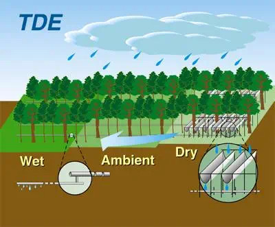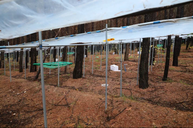 也与紧邻塞罕坝的御道口牧场建立了长期合作关系,于2020年9月开始进行草地生态系统碳水通量观测,同时也配备了一定的摄像物候观测。该样地的建成为林木交错带生态脆弱区对全球变化响应的研究提供了强力的技术支撑,补强了塞罕坝地区草地生态研究。 草地生态系统碳水通量观测仪器 经过三十余年的研究和十余年的监测,北大科研团队在塞罕坝孵化了系列科研成果: 刘鸿雁教授研究团队历经三十余年,系统开展塞罕坝及周边地区植被地理与植被生态研究,揭示了这一地区植被格局的成因,重建了这一地区过去植被演化过程,提出了区域林草植被覆盖的合适承载力。尤其是对多个造林树种固碳和耗水过程连续多年的观察,揭示了三北防护林地区主要造林树种小叶杨出现大面积死亡的原因,提出了未来区域植被恢复的策略。研究成果“中国北方生态脆弱区植被动态及其对气候变化的响应”获得2011年度教育部自然科学奖二等奖。参与完成的咨询报告“关于应对气候变化规避三北防护林衰退风险的建议”2020年得到了国家领导人的批示。 2 基于2010年建立的不同林龄落叶松人工林长期氮添加平台和2018年建立的季节不对称性增温平台,朴世龙教授团队对不同生长阶段落叶松人工林生态系统过程进行研究,旨在揭示落叶松人工林对未来气候变化情景的响应与适应。研究团队明确了氮沉降对落叶松人工林生长和土壤碳排放的影响模式,为建立高效、稳定、可持续的人工林提供了理论基础;揭示了落叶松人工林物候对季节不对称性增温的响应,为落叶松人工林建成和应对未来气候变化提供了重要的理论基础,有助于从物候学角度认识人工林生产力的维持机制。 基于2010年建设的樟子松人工林养分添加平台,王娓副教授团队对人工林生产力及土壤碳排放动态进行连续监测,改进了菌根真菌呼吸的测定方法,阐明人工林生长和土壤碳排放的响应模式,为人工林可持续管理提供参考。此外,基于不同退化草地氮添加实验平台(2011年起),开展较为系统的草地退化评估与恢复研究,建立草地退化评估指数,明确植物与土壤对人类干扰的响应,为退化草地的恢复治理提供借鉴。 4 郑成洋副教授团队选择塞罕坝45年樟子松人工林,通过穿透雨转移方法,增加、减少样方内+30%、-30%的水分,设立三个处理三个重复森林降水控制平台。研究樟子松人工林降水改变对水分利用效率、森林生长、土壤养分、植物生理等响应。 森林降水控制实验示意图 在未来,塞罕坝站将在现有监测和研究的基础上,以“林水关系”为主线,继续立足人工林生态系统的生态学基础、人工林对气候变化的响应与反馈、人工林生态效应的动态变化、不同造林模式的适应性四个研究方向开展长期定位监测和实验研究。 久久为功,薪火相传 塞罕坝站每年吸引全国多所高校的师生在此开展植物学、生态学、自然地理学、林学等学科的教学实习。 塞罕坝站目前是北大重要的生态学、自然地理学、环境科学的实习基地,也是肉视频