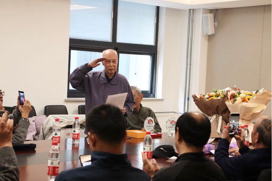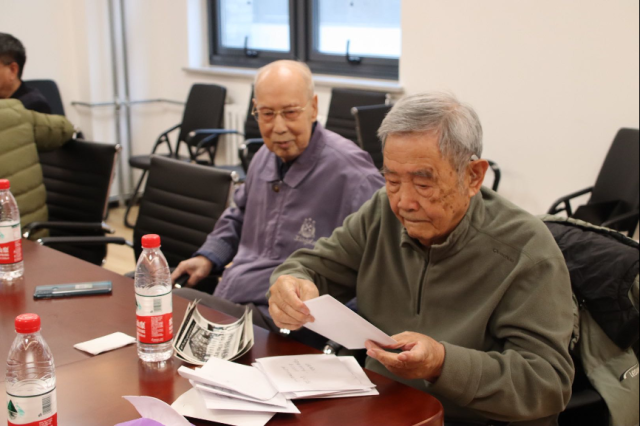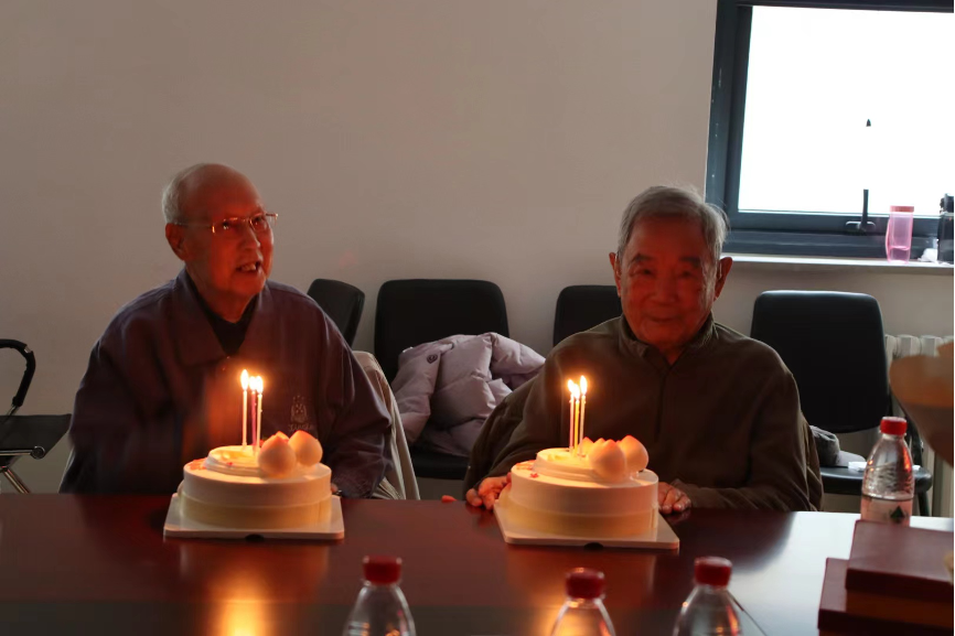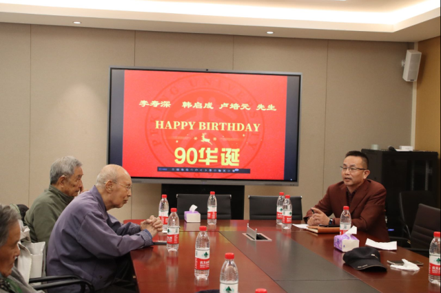 自然地理党支部庆贺李寿深、韩启成、卢培元三位党员九十华诞暨学习十九届六中全会精神主题党日活动于城环新楼366会议室成功举办。李寿深和韩启成老师出席会议,卢培元老师因身体原因未到场,自然地理党支部13位党员参会,另外还有2位党外人士参加。会议由支部书记蒙吉军主持。 首先,蒙吉军代表自然地理支部全体教师对三位90岁寿星党员送上生日祝福,祝老寿星们身体健康、福寿康宁。随后,与会成员一同观看了精心为三位老党员从初进燕园至今的纪念影像。影像中记录了三位老党员在燕园从求学、任教到退休的过程,上世纪50年代的北大校园、80年代的黄河考察、90、100周年的校庆都在影像中一一浮现,从黑白相片到彩色影像、从黑发青年到银发老者,岁月留下了痕迹,也沉淀了故事。 视频结束后,由学生代表为寿星献花并赠送了定制纪念礼物。与会成员齐唱《生日快乐歌》,寿星们对着生日蛋糕许下“希望能一起祝贺中国人民解放军建军100周年”的愿望! 李寿深和韩启成先生发表了感言。李寿深老师回顾了自己从1953年进入北大地质地理系(肉视频