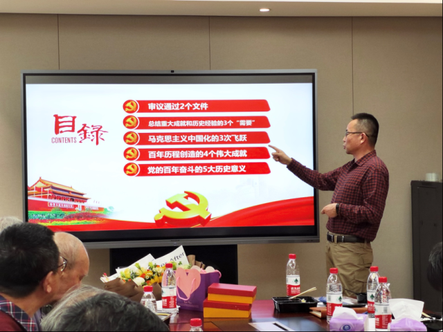 的前身)至1992年退休的工作体会,着重介绍了自己在参与土地遥感、世界军事地理等科研与教材编写工作的经历。韩启成老师则对在场老师提出期望,要始终保同党中央高度一致,与时俱进、不断学习,为党和国家培育更多优秀的地理人才。 与会成员一边传阅老照片一边畅谈往事,在致以崇高敬意的同时,也被他们初心如磐的精神深深感动,纷纷表示从老党员身上学习到了守正务实、追求卓越的赤诚之心。 之后,蒙吉军带领与会成员学习了十九届六中全会精神。他通过9个数字从2个文件、3次飞跃、4个伟大成就和5大历史意义等方面解读了十九届六中全会的公报内容,并强调要充分认识到党的十九届六中全会的重大意义,把学习贯彻十九届六中全会精神作为当前和今后一个时期的重要任务,继续坚定不移跟党走,坚决贯彻党的理论、路线、方针和政策。 值此建党百年之际,自然地理党支部举办此次活动,一方面是庆贺党员李寿深、韩启成、卢培元九十华诞,激励支部成员继承老党员的优良传统,不忘初心使命、砥砺奋进前行。同时,深入学习贯彻十九届六中全会精神,推进党史学习教育走深走实,引导支部成员以史为鉴、开创未来,将个人命运与国家命运深深融在一起,创造中华民族新的辉煌。