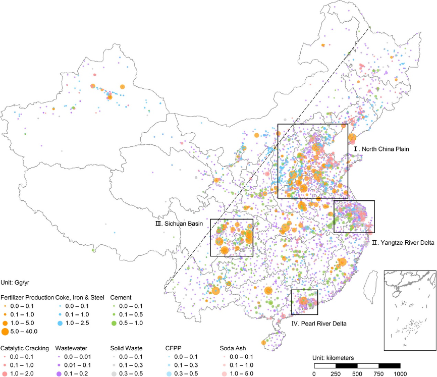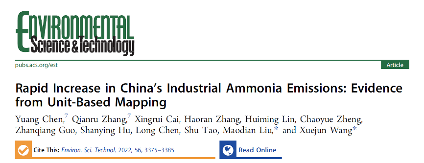 王学军教授团队在国家自然科学基金支持下,与耶鲁大学、循环经济协会、清华大学等单位的同行合作,利用最新的测量数据和工厂级别信息,建立了高空间分辨率的工业源氨排放数据集,此数据集涵盖8个主要工业行业和27个细分过程类别(图1)。 图1 研究的主要框架与数据集 研究发现,中国在2019年的工业源大气氨排放达到798千吨(90%置信区间下668-933千吨),相当于全世界工业源氨排放量的44%±20%。此排放通量相比1998年增加了3倍(图2)。此外,虽然化肥生产导致的氨排放约占中国工业氨排放量的一半,但在过去20年中,其他行业氨排放也在快速增长。例如水泥生产和燃煤发电厂的氨排放量分别从接近零增加到164千吨和41千吨,这主要是由于脱硝设施的大规模应用过程中导致的氨逃逸。 图2 中国工业源氨排放的时间趋势;(a) 1998至2019年工业氨排放量的时间趋势;(b) 1998至2019年工业氨排放物行业组成变化的时间趋势 工业源氨排放在空间分布上集中于经济发展水平较高地区,尤其是人口密度更高的东南沿海城市(图3),因此氨排放造成的人群健康影响不容忽视。此研究结果表明,与其他主要大气污染物不同,中国的工业氨排放控制仍处于关键时期,非常有必要实施更严格的氨排放标准和鼓励污染控制技术的创新。 图3 基于点源的2013年中国工业源氨排放;点的面积代表每个工厂的氨排放量(单位: 千吨/年);圈出区域为排放热点地区 论文成果以“Rapid increase in China’s industrial ammonia emissions: evidence from unit-based mapping”为题发表在《Environmental Science & Technology》杂志上。肉视频