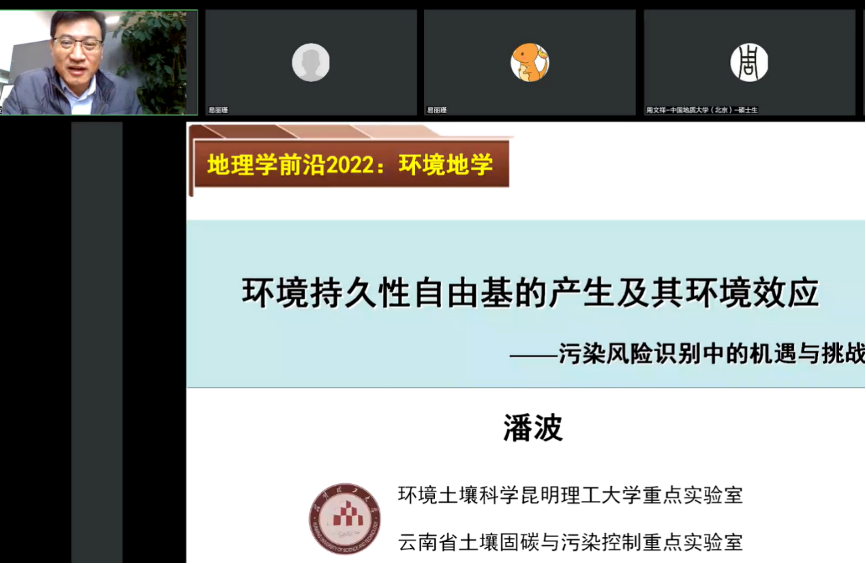 党委书记、副院长彭建教授致辞。随后,王学军教授从历史发展、学科方向、学科交叉、师资力量、研究成果、场地条件等方面介绍了环境学系情况。 陶澍院士以“生活能源利用的环境与健康影响及应对”讲授本次课程第一讲。以近十年间中国空气质量的明显改善为引,陶澍院士从中国生活能源的转型、生活能源转型的健康与气候效应、北方地区双替代的环境与健康效应、禁止土法炼焦的健康效益、排放与气象条件对大气颗粒物污染的影响、室内空气污染及其健康危害、新冠疫情期间的暴露变化等7个话题出发展开,介绍了课题组研究过程中的思考、研究内容以及研究成果。后半部分则着重介绍了大气黑碳浓度研究中气象条件的重要影响,以及在模型建立过程中需要注意的问题。课程结束后,来自中国地质大学(北京)、内江师范学院、北京师范大学、海南大学等高校和科研院所的学员积极参与互动,与陶澍院士就模型的使用条件、室内空气质量的模拟方法等内容进行了交流讨论。 22日下午,胡建英教授以“环境毒理与健康风险的最新研究进展”为题作专题讲座。胡建英教授以研究内容和研究思路的变化为线索,讲述了三苯基锡导致野生中华鲟畸形这一重大发现的研究过程、从生态学的研究转移到人类健康研究的契机、环境污染与人类健康研究过程中遇到的困难,以及全氟化物与不孕不育相关研究的一系列方法、过程和成果;介绍了环境毒理学最新前沿的经典文章以及高通量毒性物质甄别的相关内容。讲座结束后,来自沈阳工业大学等高校和科研院所的学员积极提问,就微塑料研究、荧光标记、流行病学调查等话题与胡建英教授展开讨论交流。 23日上午,朱东强教授以“黑碳的环境地球化学效应”为题作专题讲座。在进行对研究背景的介绍后,针对黑碳的不同特性,朱东强教授将内容分为黑碳与溶解性黑碳两部分进行深入讲解。上半部分,朱东强教授介绍了黑碳吸附有机污染物的特性、催化硫化物还原有机污染物反应与黑碳的吸湿特性;下半部分则介绍了溶解性黑碳的结构和胶体动力学特性、吸附疏水性有机污染物、以及光化学及光催化活性与光降解特性。在讲座结束后,学员们积极提问,朱东强教授解答了学员们关于DBC在不同水圈中的环境行为、棕碳等方面的问题。 23日下午,褚驰恒研究员以“环境微界面活性氧生成机理与分布规律” 为题作专题讲座。褚驰恒研究员以活性氧在现代科学各个领域的重要性、在环境领域的环境过程和污染控制方面的特殊作用引出讲座内容,介绍了ROS的基本性质、ROS环境生成与分布、ROS反应与环境影响以及环境微界面ROS过程。在讲座的最后,褚驰恒研究员分享了环境ROS研究的个人思考与展望、针对同学们的提问,褚驰恒研究员对河流沉积物、ROS的监测等问题发表了自己的看法。 24日上午,程和发教授以“苯胂酸饲料添加剂的环境与健康风险及其污染控制”为题作专题讲座。在总体论述禽畜养殖与饲料添加剂污染情况后,程和发教授通过对苯胂酸饲料添加剂的环境归宿、污染控制与健康风险的具体讲解,对苯胂酸饲料添加剂的研究情况进行了详细介绍并做出总结。讲座中,程和发教授对课题组的研究内容和研究过程、污染物的提取方法等内容进行了扩展讨论,对我国禽畜饲料添加剂使用情况的变化和法规变迁进行总结和评述,同时也和国外进行对比。同学们对程老师深入系统的讲座纷纷表示感谢。 24日下午,潘波教授以“环境持久性自由基的产生及其环境效应”为题作专题讲座。潘波教授介绍了环境持久性自由基的研究缘由、产生场景、产生机制、环境效应以及目前的制约因素,并在介绍过程中穿插讲述了自己的研究过程和感想。潘波教授介绍了他在云南宣威来宾镇虎头村这一特殊场景下,研究中经历过的困惑,以及如何再深入研究解决这一困惑。通过对云南红土高原这一特殊环境条件的研究,引出环境持久性自由基及其环境效应的后续相关研究。讲座结束后,学员就碳基材料、反应环境条件等问题与潘波教授进行了热烈讨论。 24日下午五点,环境学系主任卢晓霞老师主持了结业仪式。结业仪式上,卢晓霞老师感谢了学员们的积极参与,并强调了课程论文写作的要求;肉视频