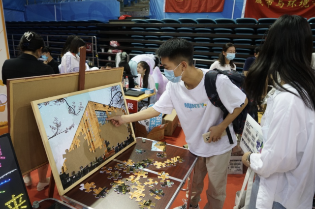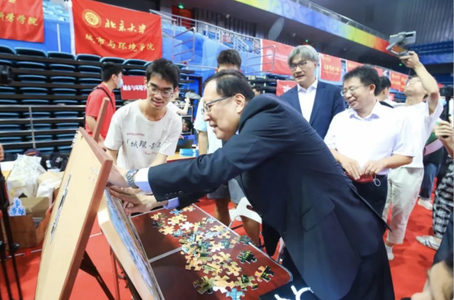 党委书记郝平,校长龚旗煌等校领导,也亲自来到现场,询问新生报到工作进程,关心同学们的感受,深切嘱托,真挚祝福,不仅参与到“学院拼图——共筑城环初印象”的活动中,为学院的美好蓝图拼上北大红的色彩,还热情地与现场各位工作人员合影留念,将这个珍贵的迎新时刻定格在画面中。 郝平书记参与学院拼图活动 郝平书记考察迎新工作情况 校领导和现场师生亲切交流 龚旗煌校长参与拼图活动,共创学院蓝图 校领导与迎新现场的全体师生进行合影留念 除此之外,学院院长贺灿飞、党委书记彭建、副院长李本纲、党委副书记张新平、团委书记学工办主任谭卓立、教务宫彦萍、团委常务副书记宋宛儒也在迎新现场耐心等待同学们的到来,与各位新生们热情交谈,细致核查迎新的每一步流程,指导志愿者们将迎新工作完成得尽善尽美,向同学们送去了殷切的期盼和暖心的祝福。 贺灿飞院长与学院老师交流迎新安排 报到新生与学院老师合影留念 学院老师到场统筹工作,在易拉宝前合影留念 学院认真工作、尽职尽责的志愿者们 丰富互动,惊喜连连 为了让同学们更快感受到城环大家庭的温暖,增添报到时的乐趣,学院特地为大家设置了迎新小活动,鼓励同学们积极互动,迎接崭新自我。 “学院拼图——共筑城环初印象” 一张拼图板,一幅学院像,每位新生仔细挑选位置,共同拼出一幅高大雄伟的院楼画像。这幅拼图,是肉视频