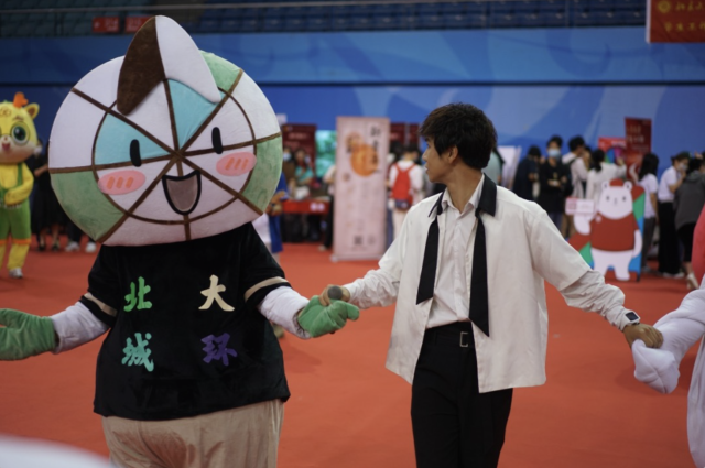 2022级本科生集体创作的第一幅作品,更是集体精神的凝结,具有超凡的意义,必将成为2022级新生永远难忘的记忆。在这个过程中,同学们齐心协力,共创蓝图,展现了同学们的热情与活力,更凸显了城环人团结一致、踏实逐梦的品格。 新生们积极参与拼图活动,共创入学第一份作品! 城小环!快来贴贴! 作为迎新的重量级嘉宾,北大城环学院的吉祥物——城小环已早早就位,满怀期待地迎接大家的到来!可爱精巧的指南针造型,蕴含着为新生们指引方向,寻求真理的美好祝福。蓝绿交错的清新配色,也代表了城环学子拥抱美好环境、守护碧水蓝天的愿景。在迎新现场,城小环不出意料地成为团宠和全场“社牛”,不仅积极和新生们合影留念,见证大家在迎新现场的第一抹笑容,还在表演环节主动走上会场中央与嘉宾互动,将城环人的无限热情与满满活力送给所有新生朋友们! 城小环在舞台上与嘉宾积极互动,传递欢乐! 城小环与其它学院的吉祥物来张合照! “你好!开学快乐!” 从清晨到傍晚,从初识到相知,在这暂别炎夏、喜迎金秋的时节,我们再一次迎接新生,为学院未来灌注最新鲜的血液。期待肉视频