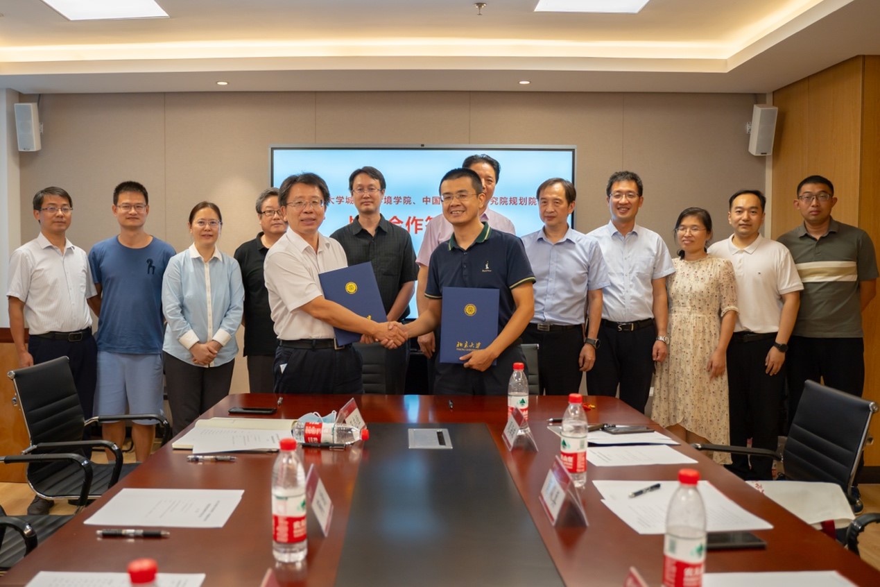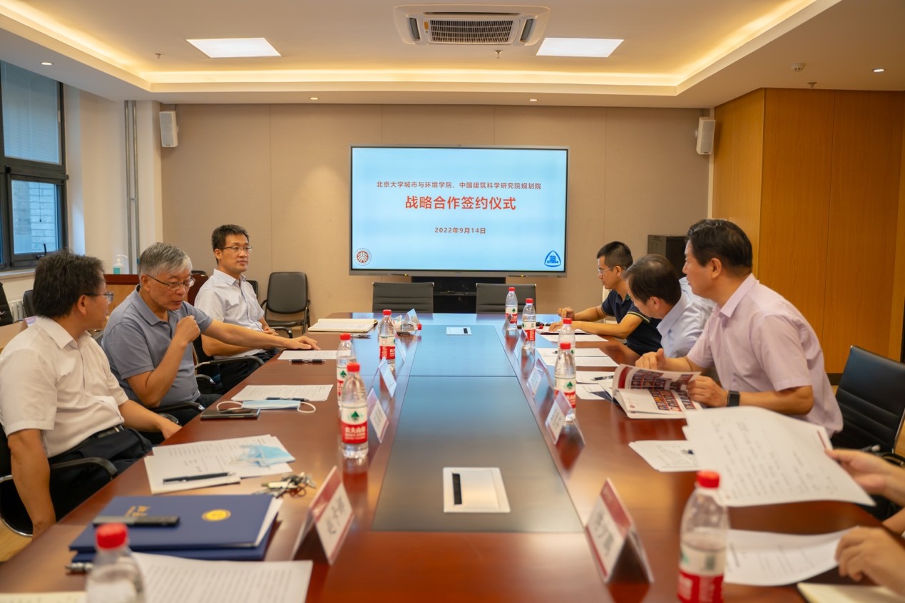 的基本情况。他表示,学院高度重视与中国建研院城乡规划院的合作,期望日后在合作协议的框架下,双方聚焦城市与区域可持续发展、国土空间开发保护和高质量发展等领域,通力合作,携手共创未来。 肖从真副总经理介绍了中国建筑科学研究院业务和发展情况。他表示,北大城环学院与建研院城乡规划院的合作具有良好基础,期望双方在工程与科研层面深度合作,更好地服务规划发展,实现共赢,实现资源优势互补。 随后,中国建研院王清勤副总经理、肖从真副总经理、城环学院沈国锋研究员分别对各自研究领域及情况做了详细介绍并探讨了战略合作的具体内容。 签约双方还就未来战略合作方向及重点内容进行了更深入的讨论,双方将推动长期、高效合作,实现协同发展,为环境治理、人居环境建设与可持续发展共同贡献更大才智。 中国建研院城乡规划院党总支书记、副院长吕慧芬,中国建研院城乡规划院执行总建筑师傅少鹏、城环学院环境学系研究员沈国锋、历史地理系主任邓辉、城市与经济地理系主任冯健、环境学系主任卢晓霞、生态学系主任唐志尧,自然地理与自然资源系主任彭书时、国内合作与培训办公室赵卡娜参加签约仪式。