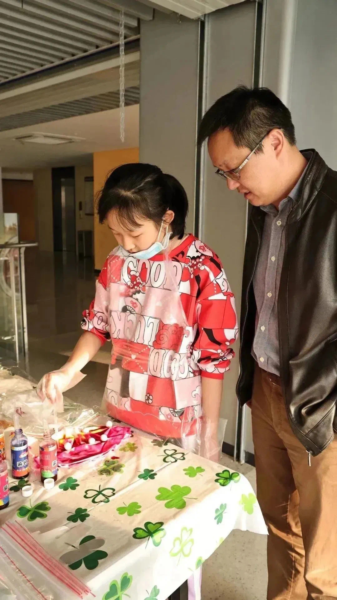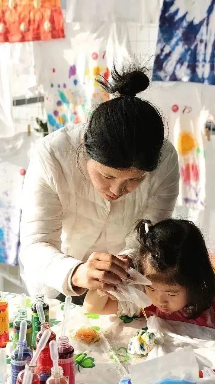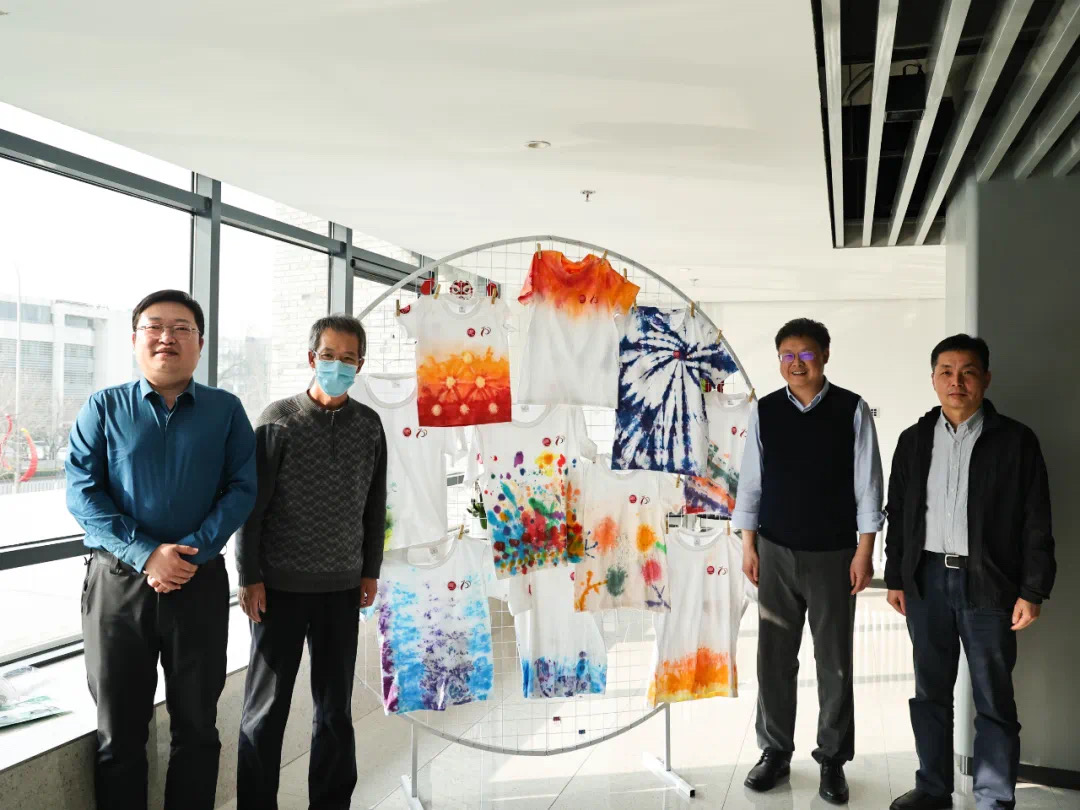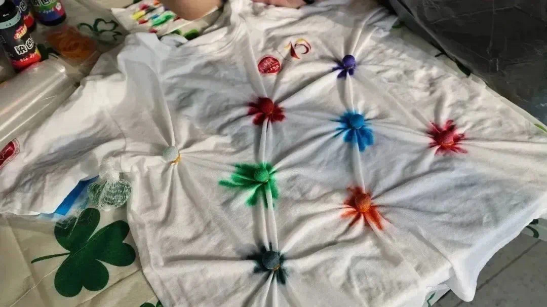 地理学科建立70周年和城环学院建院15周年献礼。学院党委书记彭建、党委副书记陈耀华、副院长曹广忠和金鑫也来到现场,为参与活动的各位教职工送上节日祝福。 学院领导到场慰问 扎染是中国民间传统的染色工艺,主要分为扎结和染色两部分,通过纱、线、绳等工具,对织物进行扎、缝、缚、缀、夹等多种形式组合后进行染色。经过工作人员的简单介绍,大家迅速掌握了扎染技术的基本方法,迫不及待地投入到作品创作中。 活动现场 妙手生花,巧思尽显。用玻璃弹珠扎结花朵、用皮筋木片旋转捆绑,简单的白色T恤在大家手中被赋予了多姿造型,意想不到的惊喜正在被悄悄创造。 不同扎结方法的作品 耐心晕染、精心点缀,斑斓的色彩在大家的创意组合下呈现出无穷变化。自由豪放的泼墨、简单雅致的渐变、活泼可爱的花卉、自由奔放的火苗……或独自挥毫,或亲子联动,大家全情投入、用心创作,将艺术和美好心情融入一件件匠心独具的扎染作品中。 大家认真创作 固色濯洗,沉淀绚丽。浸泡结束后,一份份“扎染盲盒”被陆续开启。奇妙的扎结工艺让原本简单孤立的色彩渲染拓展为大片如梦如幻的斑斓,碰撞交织的花纹图案让原本无心之举的勾勒也变得如神来之笔一般。接连不断的惊喜让活动现场更加其乐融融,大家相互展示自己满意的作品,赞美之声一时不绝于耳。最后,大家纷纷与自己的作品合影留念,定格这份与扎染邂逅的美好回忆。 大家与自己的扎染作品合影留念 本次活动不仅让大家体验到扎染技艺的独特魅力,促进了教师间的交流,也弘扬了中华民族传统文化、陶冶了大家的艺术情操,使老师们在繁忙的工作中放松身心,同时收获了一份独特作品。 活动合影