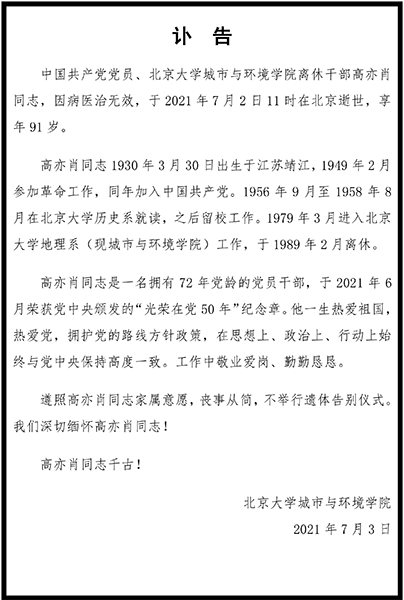 高亦肖同志讣告