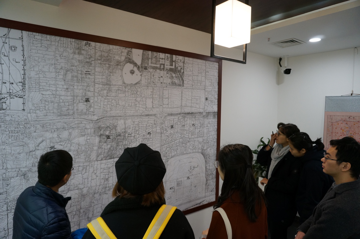 在学习了历次北京城市总规后,同学们先后在二层和三层展厅参观了精美的北京市历史地图和故宫模型。历史地图展现了明清和民国时期北京外城、内城、皇城、宫城的建筑风貌,街道格局井然有序、错落有致,特别是以中轴线为中心的“左祖右社”、“前朝后市”的城市布局,不仅体现了博大精深的中华传统文化,更反映了古代“天人合一”思想等城市规划领域的智慧结晶。故宫模型以宏大的气势展现了紫禁城的全景,饱含中国古代文化和哲学思想的城市与建筑规划特征。有的同学则从历史地理学的视角初步解读了北京城的古建筑在城市规划与城市发展中的意义与价值,进一步丰富了同学们的认知。