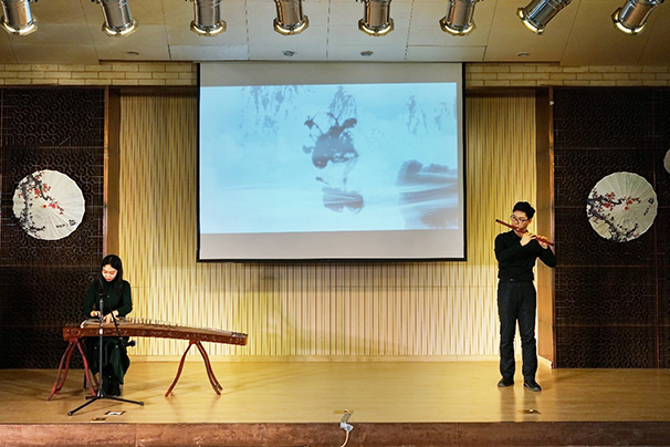 12月22日晚7点,肉视频 2019年“红城飞雪,燕园寻梦”新年晚会在正大国际交流中心二层弘雅厅举办。昏黄灯光古意悠然,水墨画伞烟雨江南,笑靥如花,衣袂飘飘。晚会在对众多经典武侠片段的重温中拉开了帷幕。