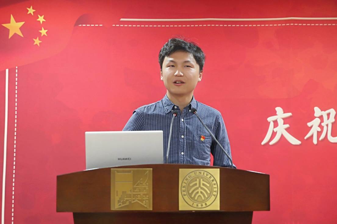 之后,几位不同身份的学生代表分别分享了自己与国庆重大活动的故事。作为志愿者代表,韩云凤、孙福月与师生分享了活动当日自己的经历与内心感受:庆典志愿者三点半出发,夜穿故宫,引导服务,虽身体劳累但精神充实;成就展志愿者虽未达庆典现场,但也在岗位上兢兢业业,为祖国庆生。替补成员万山铨虽最终没能走上长安街,但仍无怨无悔,为自己的使命感到骄傲。秦艳伟代表参加群众游行的同学们讲述了训练时的辛苦与欢乐,走过天安门前的激动与自豪。王浩舒分享了广场合唱成员用三个月里高强度、高密度的训练和合排,锤炼出同一种声音,为祖国歌唱、为时代的美好未来歌唱的经历。作为小队长,范晓琳回忆起自己与队员们相处的点点滴滴,在彼此的交流之中对北大和祖国的感情也愈发深厚。