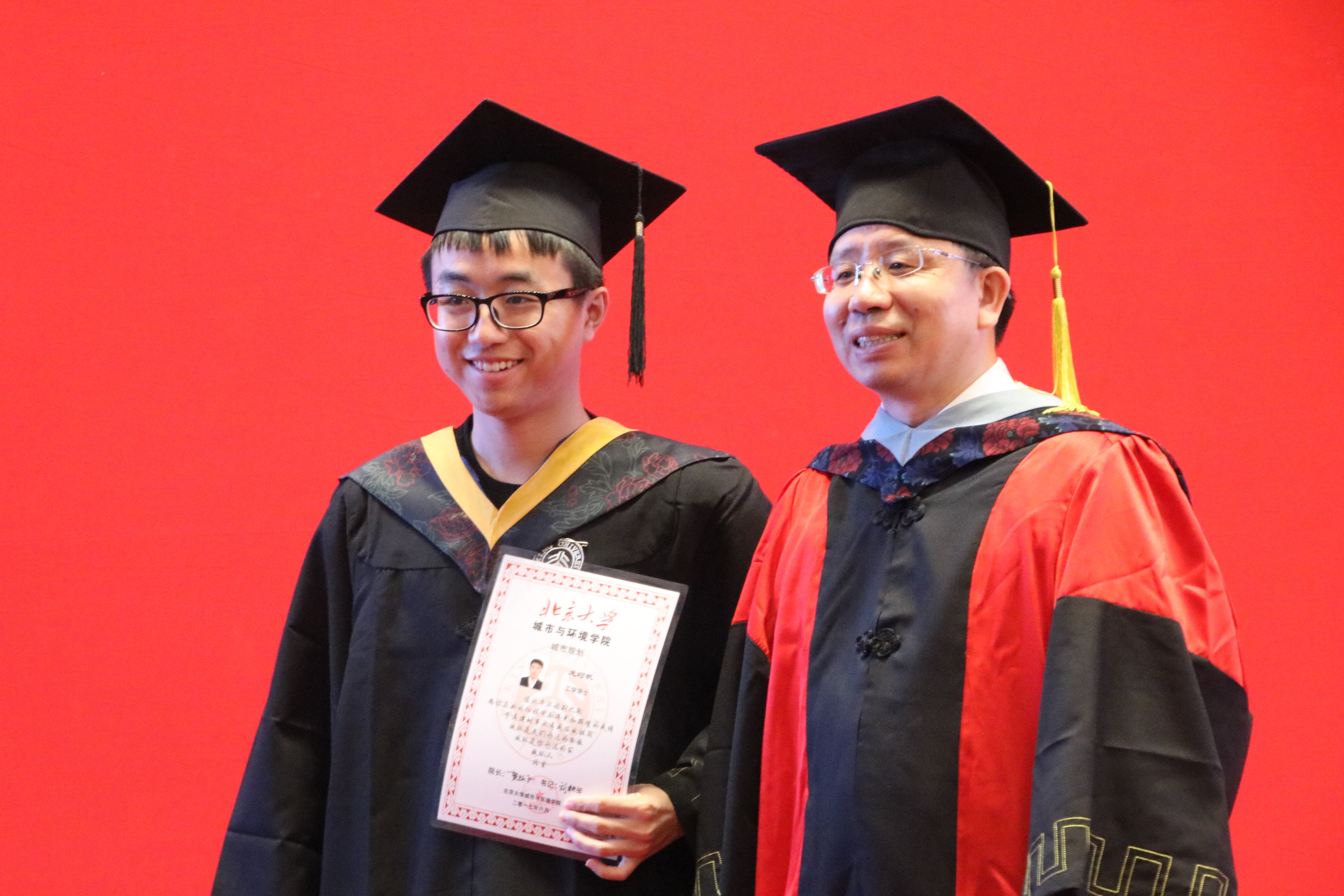 学院副院长李本纲老师、李双成老师分别宣读本科生、研究生学位授予决定,院长贺灿飞老师和党委书记刘耕年老师为学生拨穗、颁发纪念证书并合影。