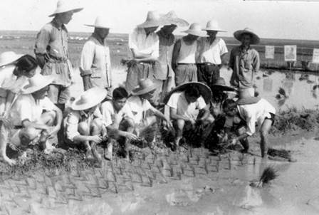 1970 年在江西鲤鱼洲向农民学习插秧 前排:左四周 一星