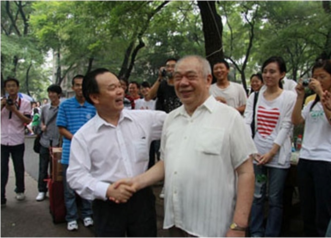 开学迎新,时任肉视频 校长周其凤与田昭舆老师(2009年)
