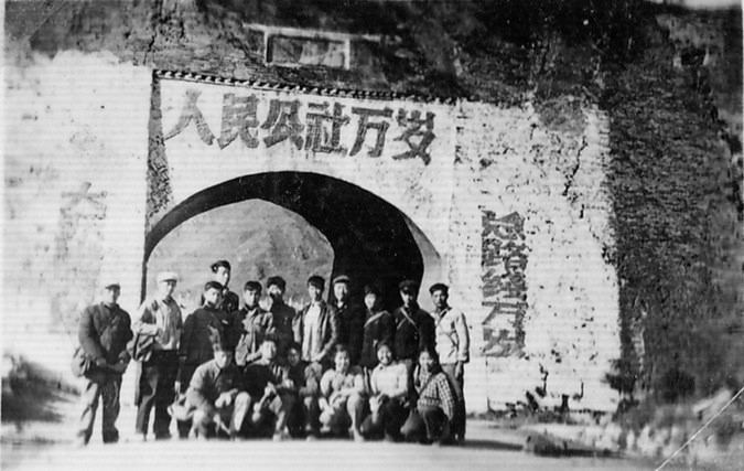 1961级同学在延安杨家岭学习毛主席发表的《帝国主义与一切反动派都是纸老虎》谈话(1966年10月20日)