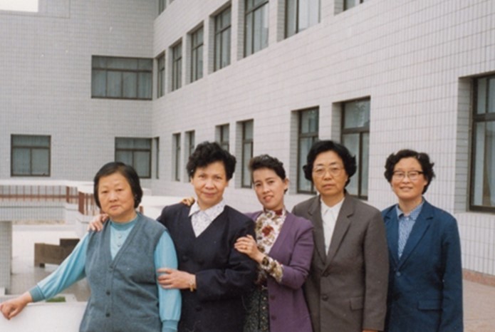 逸夫二楼落成,于逸夫二楼前合影(1992年4月)左起:华炳荣、简兰芝、谭昌荣、杜美霞、周林凤