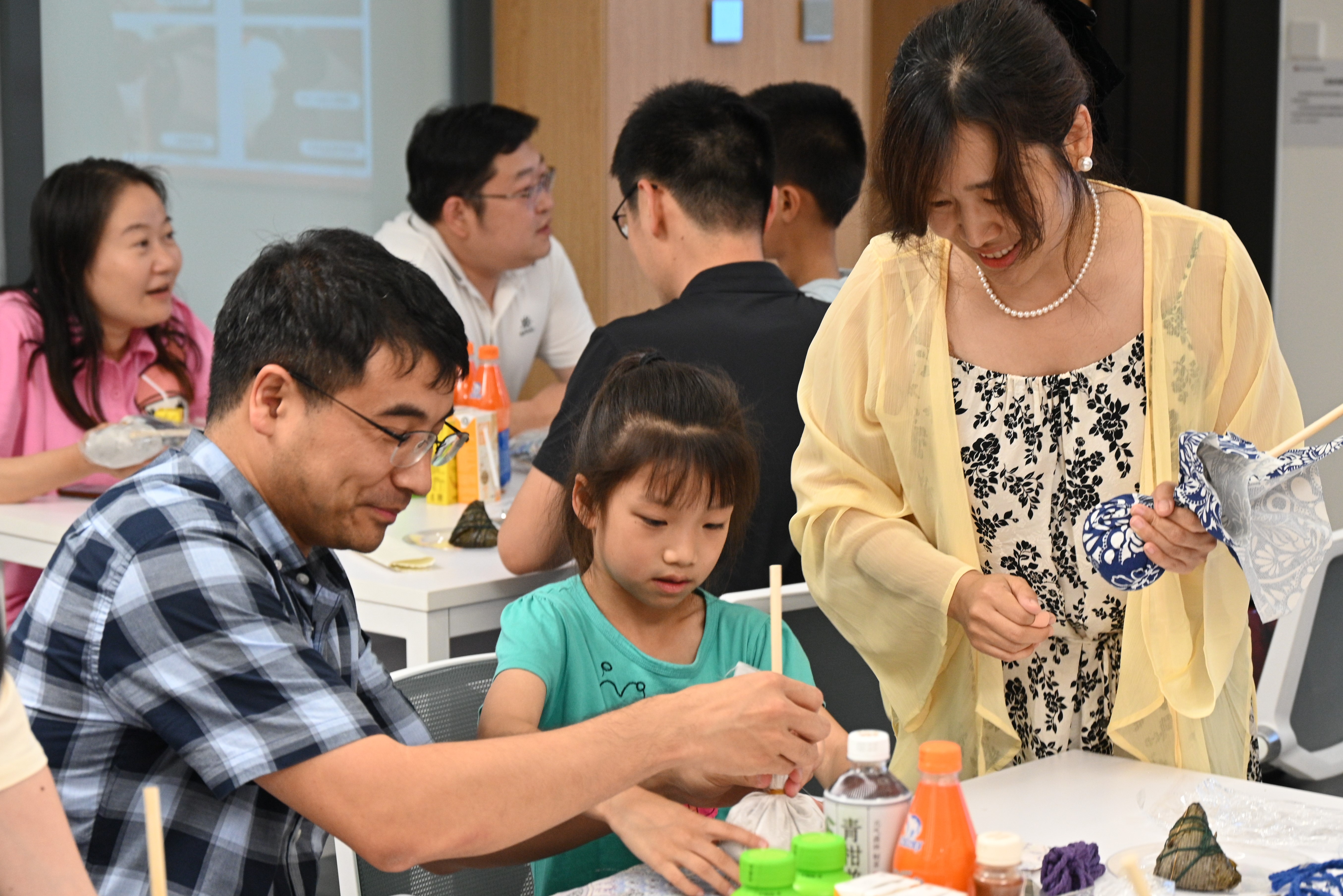 在艾草香与粽香交织的温馨氛围中,老师们欢声笑语,合影留念,互相展示着自己的作品,也欣赏着对方的作品。这一刻,大家不仅感受到了传统文化的魅力,更在彼此的陪伴和交流中,收获了欢乐与温暖,形成了一幅其乐融融的美好画面。