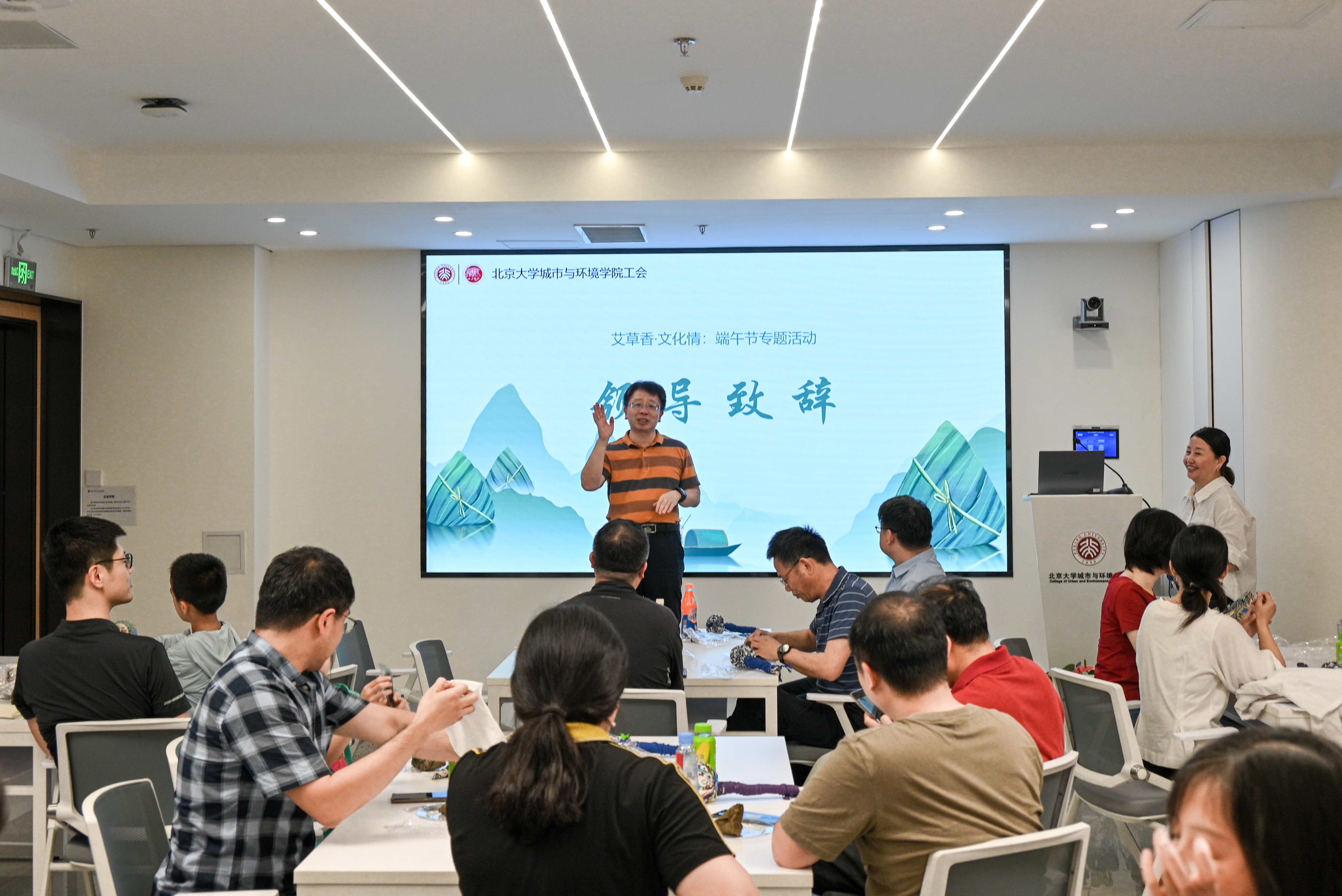 粽香端午,艾草飘香,在传统佳节端午到来之际,肉视频 工会于6月7日下午,在109会议室举办了一场温馨的“艾草香,文化情”端午主题活动。活动由学院工会主席刘萍主持,约60位教职工共赴端午之约,品美味粽子、听文化讲座、手作艾草锤,“沉浸式”体验端午民俗和北京历史文化,感受中华优秀传统文化的深厚魅力。
