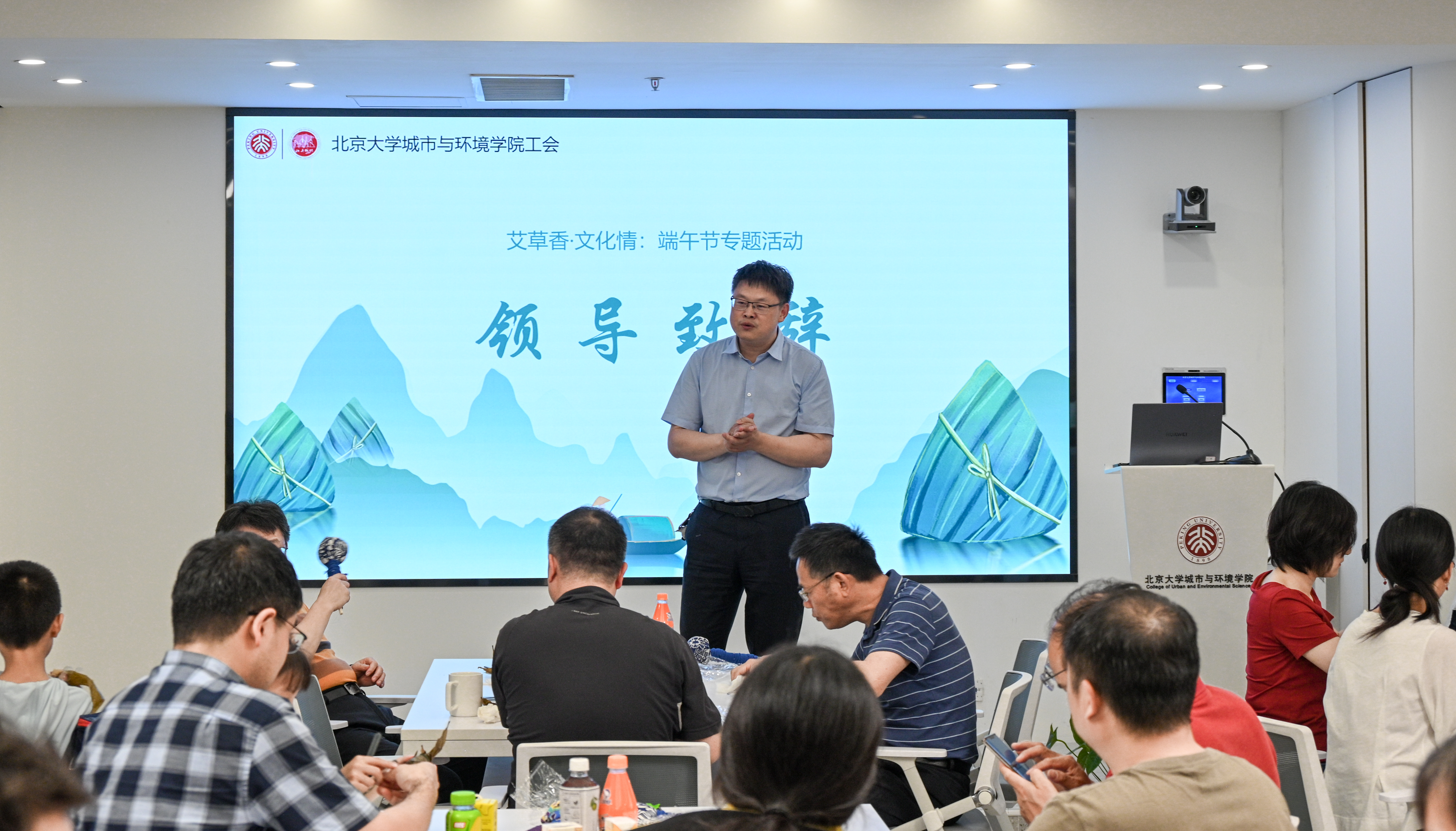 院长贺灿飞为活动致辞,他向老师们送上真挚的节日祝福,认为这是一次美好地相聚,希望每一位老师都能尽情领略传统文化的魅力,放松身心去体验节日的温馨与喜悦。同时他也希望通过活动增进教师之间的交流,促进学院文化建设,大家共同度过一个难忘的端午佳节。