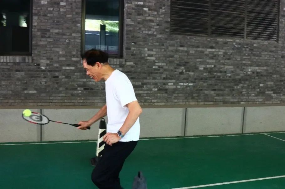 在“障碍颠球赛”中,参赛老师需手持羽毛球拍,托着网球绕障碍物进行往返跑,通过计时决定排名。大家先集体进行了十分钟的热身活动,然后热情高涨地投入赛场。有的老师身轻如燕,一次成功;有的老师虽有波折,但也乐在其中。每个人的脸上都洋溢着欢乐的笑容,把本次活动气氛推向高潮。