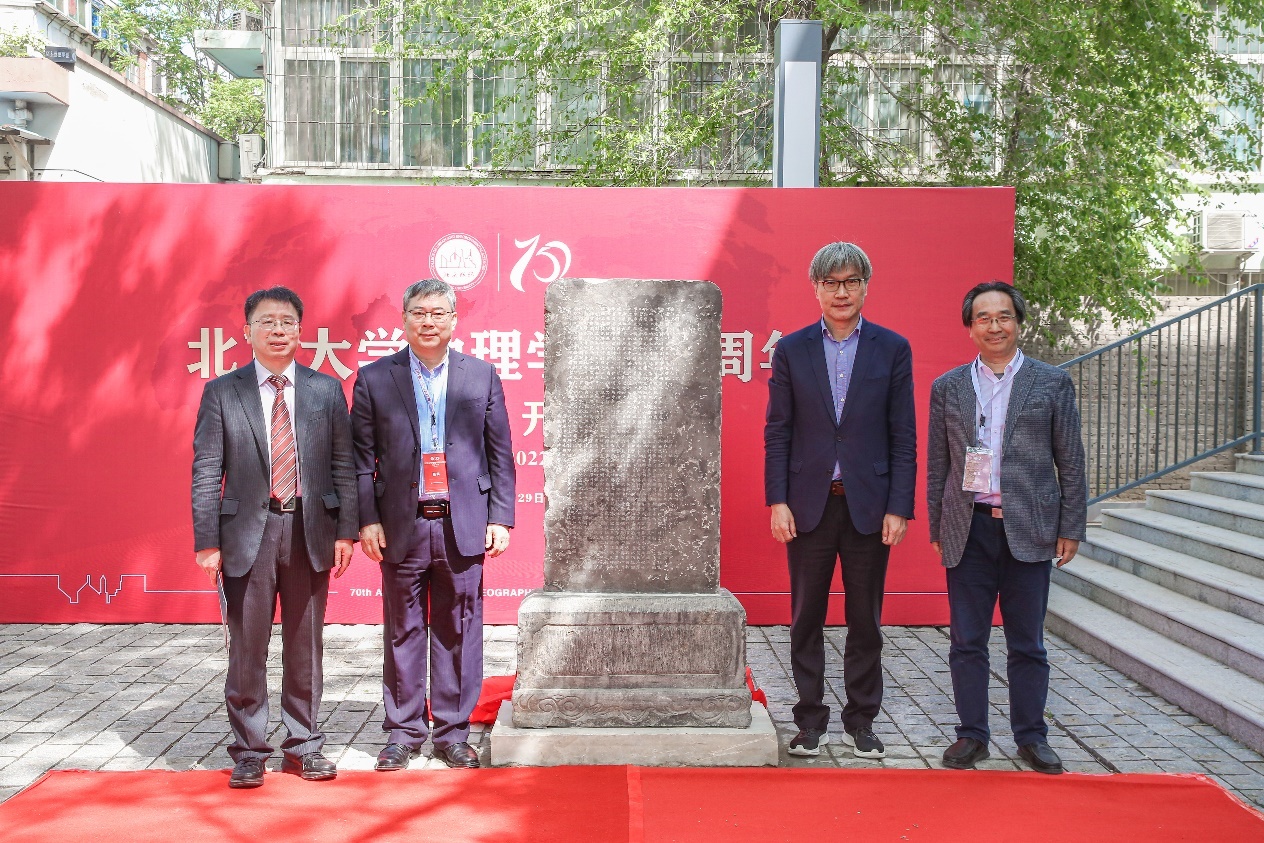 王博、张国友、贺灿飞、吴必虎为“中国地学会会址碑”复刻碑揭幕