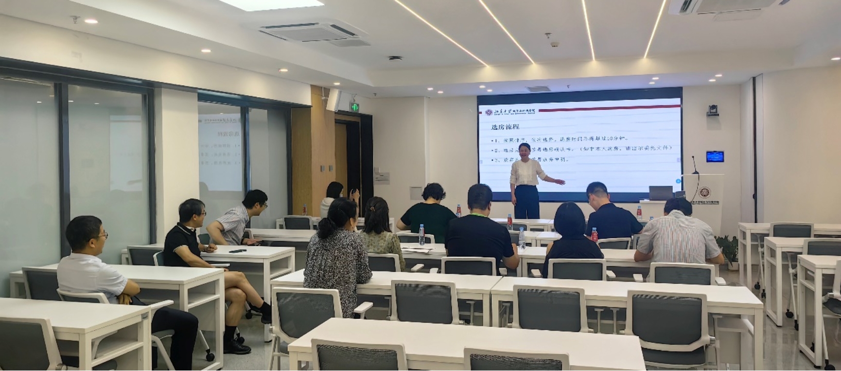 现场选房会上,工作人员介绍了选房流程及注意事项。提醒教师在选房成功后,必须在1个月内完成办公室搬迁,以免影响后续教师的接续搬迁,所有教师的搬迁工作需要在暑假期间全部完成。根据《肉视频 教员办公室再分配办法》,申请教师按照排序依次进行了选房,由于大家已提前看房,对房间比较了解,所以现场选房进展流畅,全部选房工作在半个小时完成。选房完成后的当天,就有一位教师快速完成了原办公室的腾退和新办公室的进驻,给后面的教师留下充分的搬迁时间。