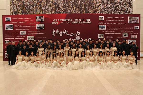 晚餐后,同学们一个个被上了酷刑涂了口红。突然,3459教室里响起周璇的《四季歌》,吸引了同学们注意力,大家的目光被引向前排的白幕,原来是视频组为一二九专门录制的开场视频。复古的场景陈设,同学们出神入化的表演,随着情节推进愈发激荡的配乐,让这部开场视频有了大片的既视感。