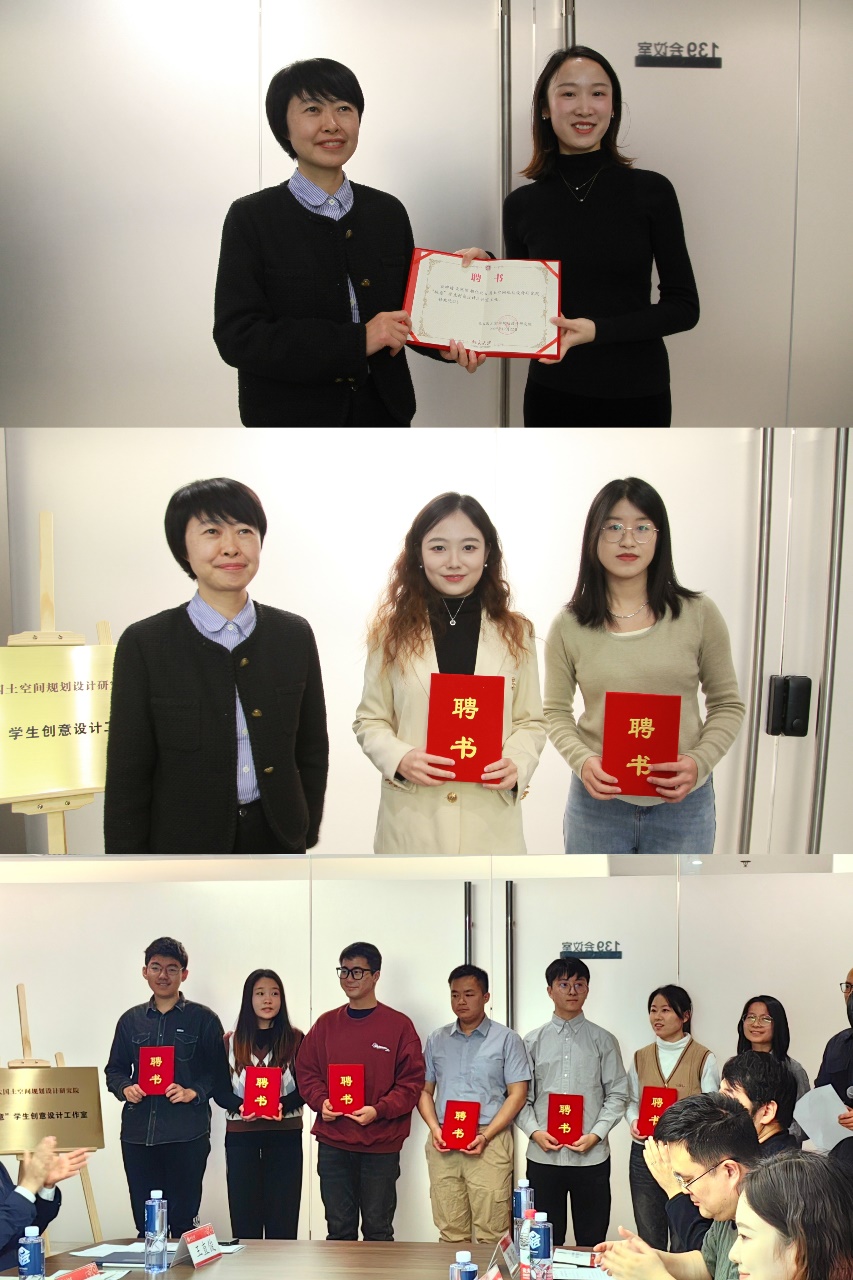 北大国土空间规划设计研究院副院长刘明鑫宣读了工作室成员聘任名单。聘任宋宛儒为工作室指导教师,聘任赵千惠为商务总监,张慧新为财务总监,聘任赖雨亲、刘润轩、陆莹、黄喆、黎嘉厚、王鑫磊、张可欣为设计师。