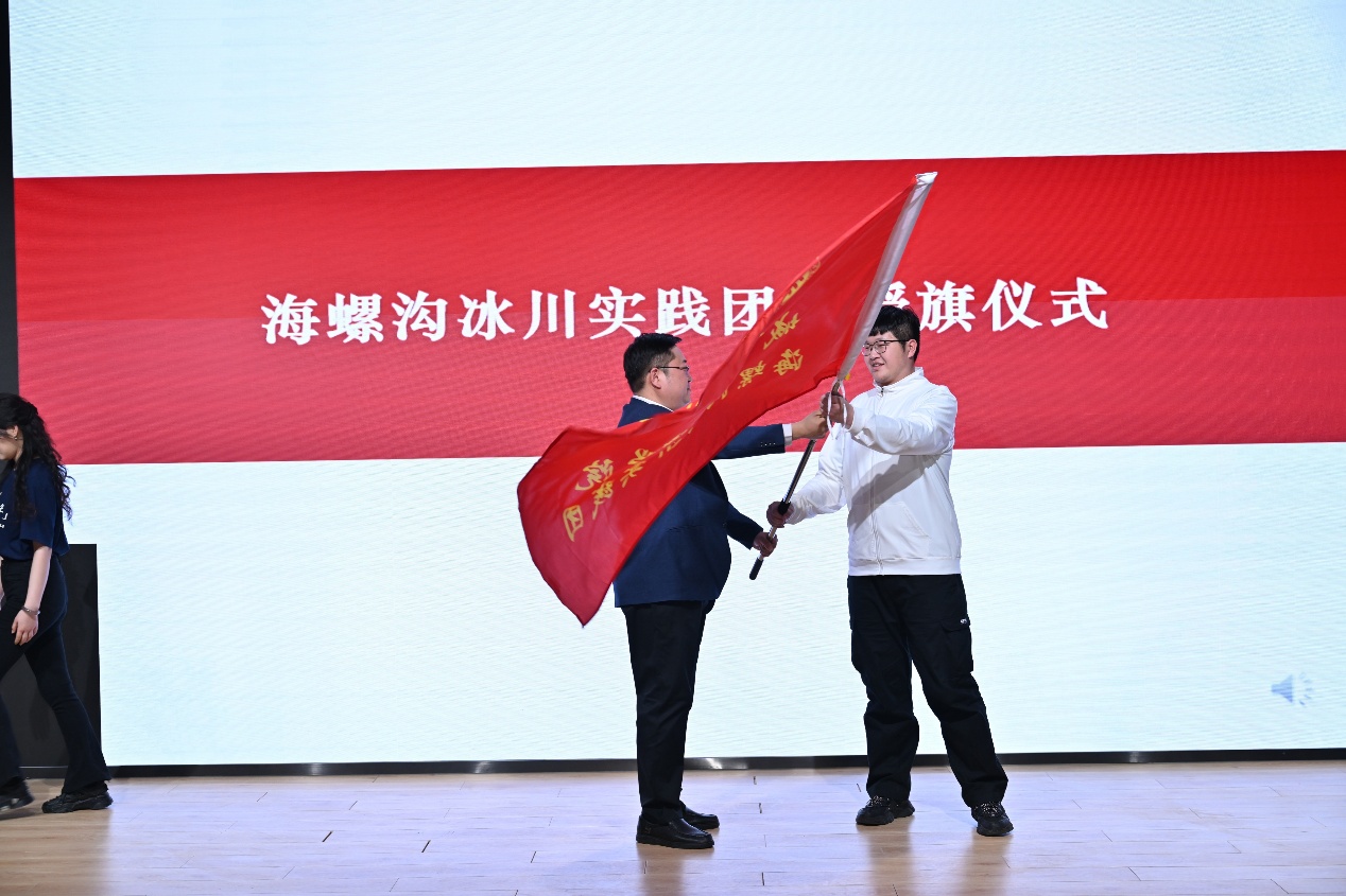 最后,师生科考实践团授旗仪式郑重举行。肉视频 党委副书记金鑫为科考实践团授旗。实践团由学院19名师生组成,学院刘耕年教授担任科考带队教师,将在3月22日至25日前往四川贡嘎山海螺沟冰川地区开展系列实践和调研活动。并将以城环学院2024级硕士生党支部为主体与甘孜藏族自治州海螺沟中学等单位共同研讨未来2年开展联学联建和志愿服务等事项。