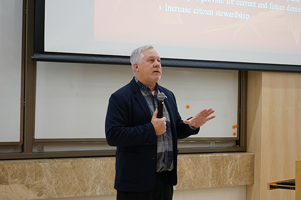 主题报告第二环节由南开大学旅游与服务学院于海波副教授主持。美国德州农工大学游憩、公园和旅游科学系Gerard Kyle教授作了题为《美国保护区的社会承载力(Social Carrying Capacity in U.S. Protected Areas)》的主题报告,介绍了社会承载力(Social Carrying Capacity)的概念、相关理论与基本框架,以及包括密度、期望、拥挤程度、安全、行为、满意度等指标的测量与评价体系。南开大学旅游与服务学院于海波副教授以《中国国家公园:议程设置与生态教育(National Parks in China: Agenda Setting and Environmental Education)》为题作主题报告,她从传播学中的议程设置(Agenda Setting)理论出发,将83位学生样本分为三组进行试验,探究提高国家公园议程设置的权威性意识与积极情感意识,分别对样本对国家公园环境的认知及其亲环境行为意象产生的影响;结果发现,提高权威性意识与积极情感意识的议程设置都能显著提高样本对国家公园环境的认知,进而影响其亲环境行为,而提高积极情感意识可以直接影响样本的亲环境行为。