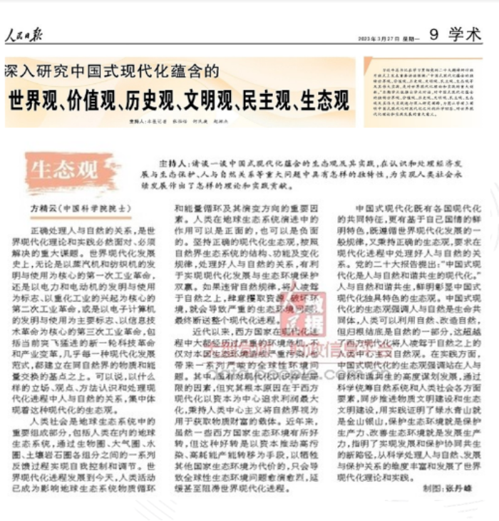 我们坚持党建引领,凝聚发展合力。我们积极发挥学科和人才优势,组织师生开展习近平新时代中国特色社会主义思想专题学习,推进习近平生态文明思想学理化阐释和大众化宣传。方精云院士接受《人民日报》专访,深入阐释中国式现代化的生态观;贺灿飞院长在北大校报刊发《长江经济带三大关系》文章,解读习近平总书记在2023年10月12日南昌座谈会上的讲话精神;刘迎陆、曾良恩等作为北大博士生讲师团成员,用青春话语传播党的创新理论、以青年宣讲赋能主题教育。师生同学共做,以习近平新时代中国特色社会主义思想凝心铸魂。