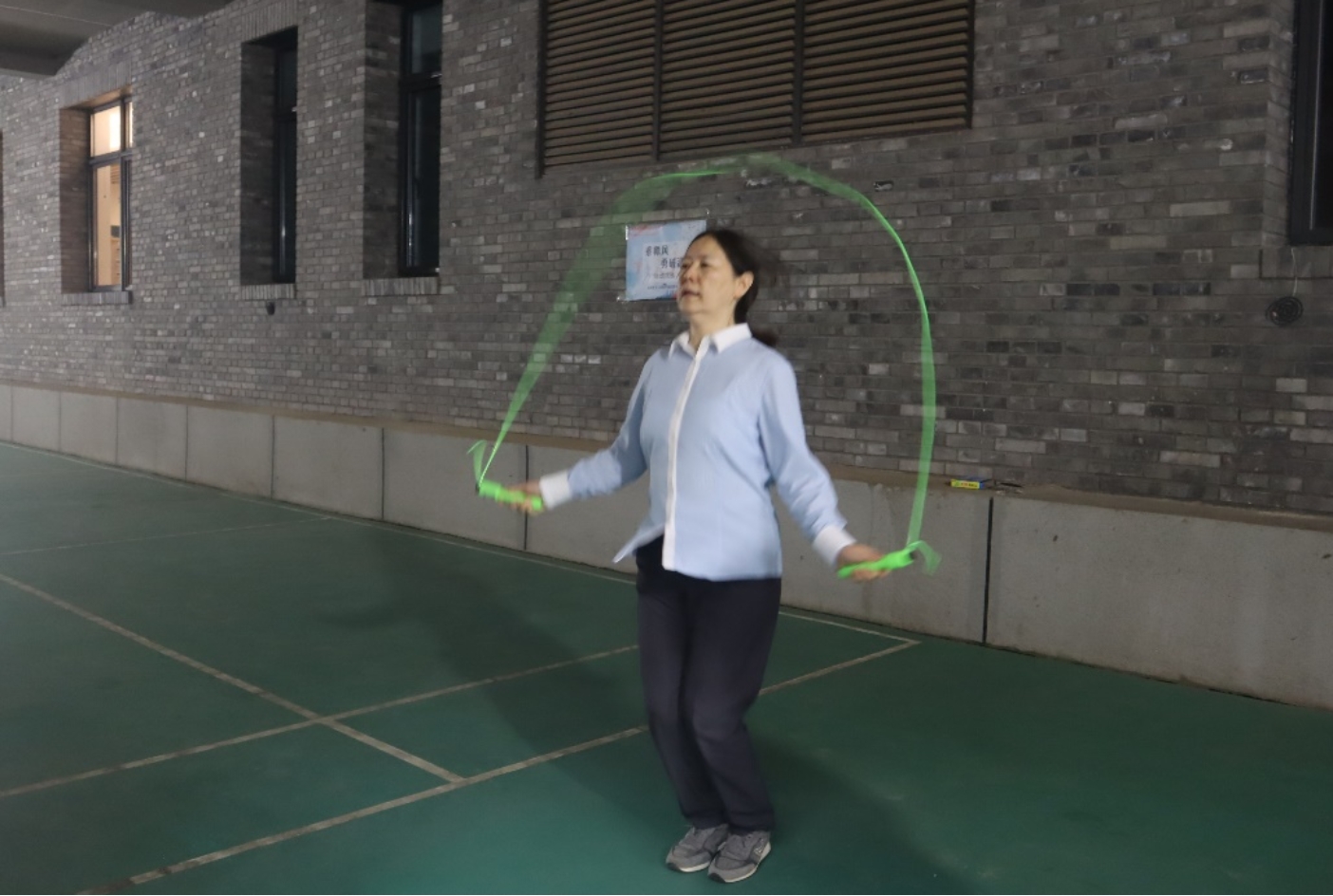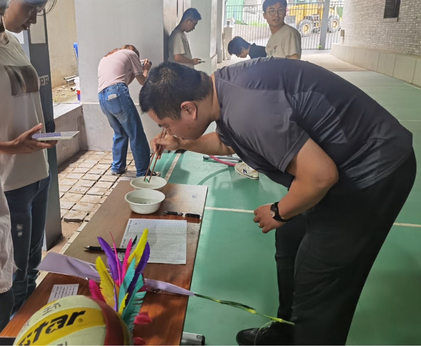 完成答题挑战后,老师们兴冲冲地来到“乘师风,勇破浪”运动挑战区域。该挑战共有五个项目:夹玻璃球挑战、毽子挑战、呼啦圈挑战、跳绳挑战、垫排球挑战。大家热情高涨地投入了各自的赛场,赛前热身,互相指导,一派活力四射的景象。彼此的眼里都闪着不服输的光,在运动中全力以赴挑战自我,无不大汗淋漓,喜笑颜开。