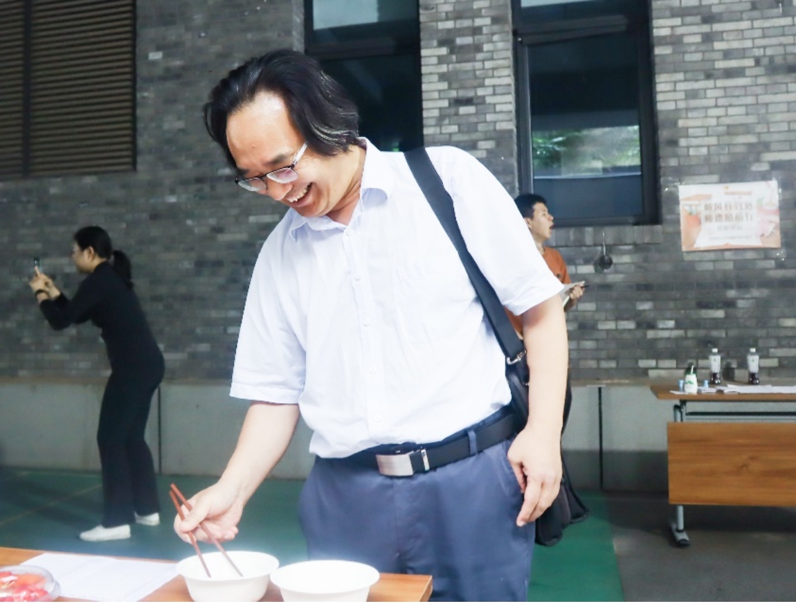 刘萍介绍接下来的活动内容。2023年教师节主题为“躬耕教坛,强国有我”,为深入学习贯彻习近平新时代中国特色社会主义思想,贯彻学习习近平总书记关于教育的重要论述和指示批示精神,肉视频 开展了师德集中学习教育活动。围绕师德师风建设,学院设置了两个活动:“师风行致远,师德照前行”答题挑战和“乘师风,勇破浪”运动挑战,完成挑战的老师即可领取教师节纪念品。