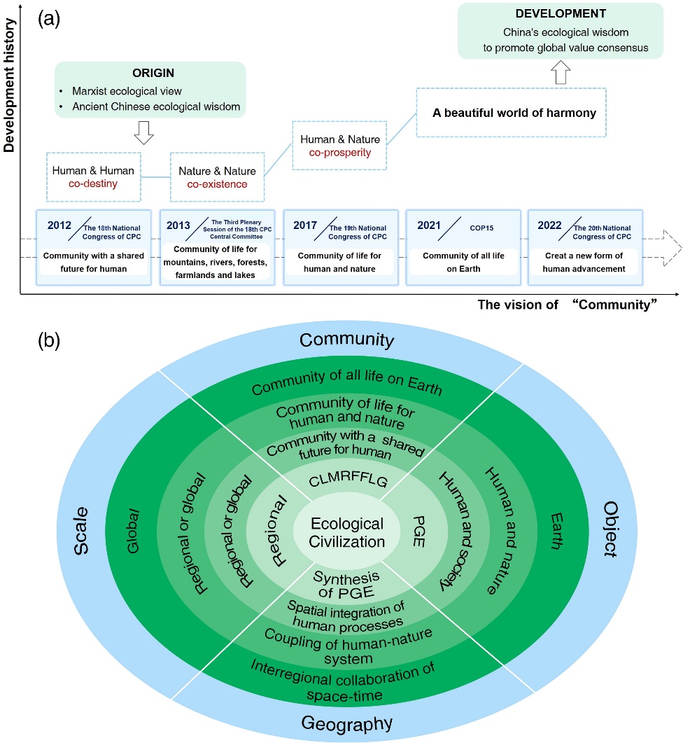 党的十八大以来,我国采取了一系列生态保护修复措施,生态环境治理力度不断加大,生态保护修复制度日趋完善,国土空间治理能力得到了显著增强。然而,我国目前仍然处于从工业文明向生态文明过渡的关键时期,既存在推进绿色低碳发展、优化国土空间开发保护格局的现实需求,也面临着全球气候治理的严峻挑战,迫切需要转变发展理念,推进全球可持续发展。“山水林田湖是一个生命共同体”、“构建人类命运共同体”、“人与自然是生命共同体”以及“共同构建地球生命共同体”等一系列有关“共同体”的重要论述是习近平生态文明思想的重要组成部分,既体现了中华民族对人类社会发展走向的智慧思考,也展现了胸怀人类共同命运的大国担当。