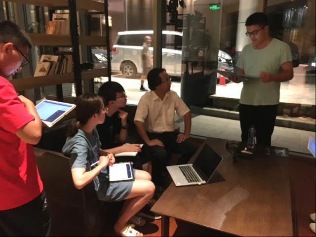 2020年学院暑期实践绍兴团,深夜指导本科生编写向绍兴市文旅集团汇报古城保护和文旅发展的报告(右二)